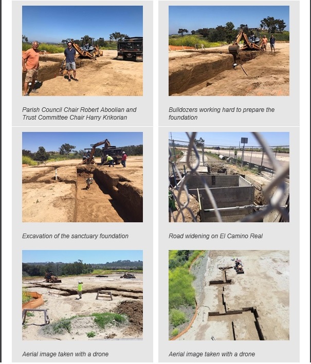 Fr. Pakrad Berjekian, along with the Parish Council and Building Committee of St. John Garabed Armenian Church of San Diego, is excited to announce that construction of the new church sanctuary has begun. After many months of contract reviews, cost-cutting changes, and hard negotiations, the contract to build the first phase of the sanctuary has been signed.  Barring any unforeseen circumstances, occupancy will take place in 12-15 months.  The ceremony to bless the sanctuary’s foundation is slated for the end of May.