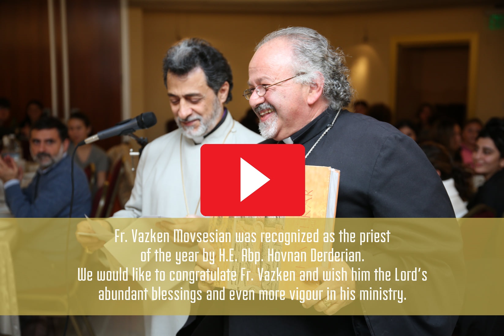 "In recognition of his unwavering ministry, visionary leadership, and numerous accomplishments in the life of the Armenian community in North America, we recognize the Rev. Fr. Vazken Movsesian as the Priest of the Year. His passion and love for the Armenian Church have been deeply felt in the hearts of our youth and communities. His moving sermons and messages have constantly reawakened the sense of commitment in each of us in our quest to reclaim our Christian identity," stated His Eminence in part.Â