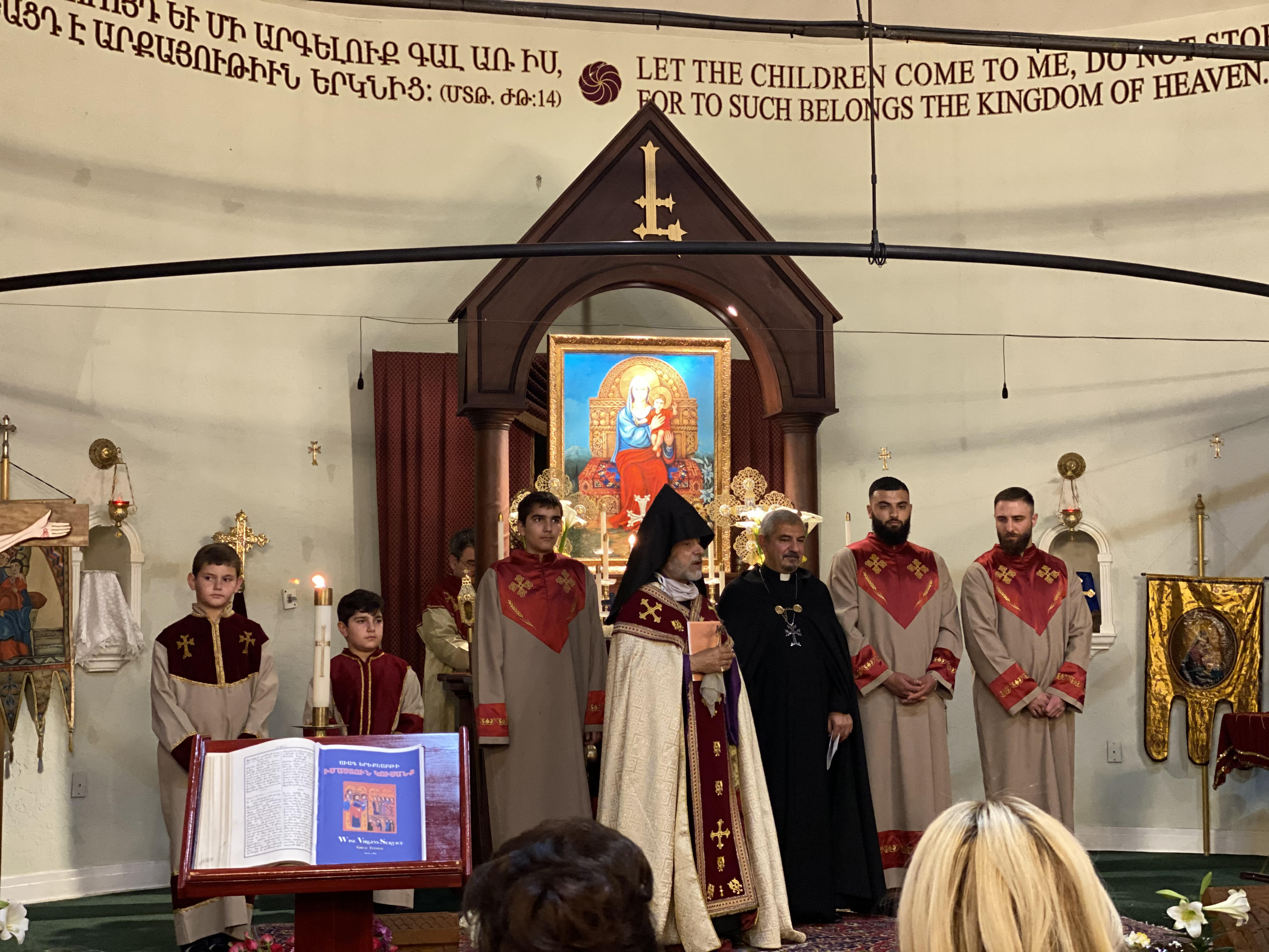 His Eminence Archbishop Hovnan Derderian presided over the ceremony which included a procession by young girls, carrying lanterns in accord with the tradition of the parable. Archbishop Hovnan gave a very inspiring and special message to the girls and the St. Peter family, about the lesson of preparedness. He recounted the parable and spoke about being light-bearers for Christ.