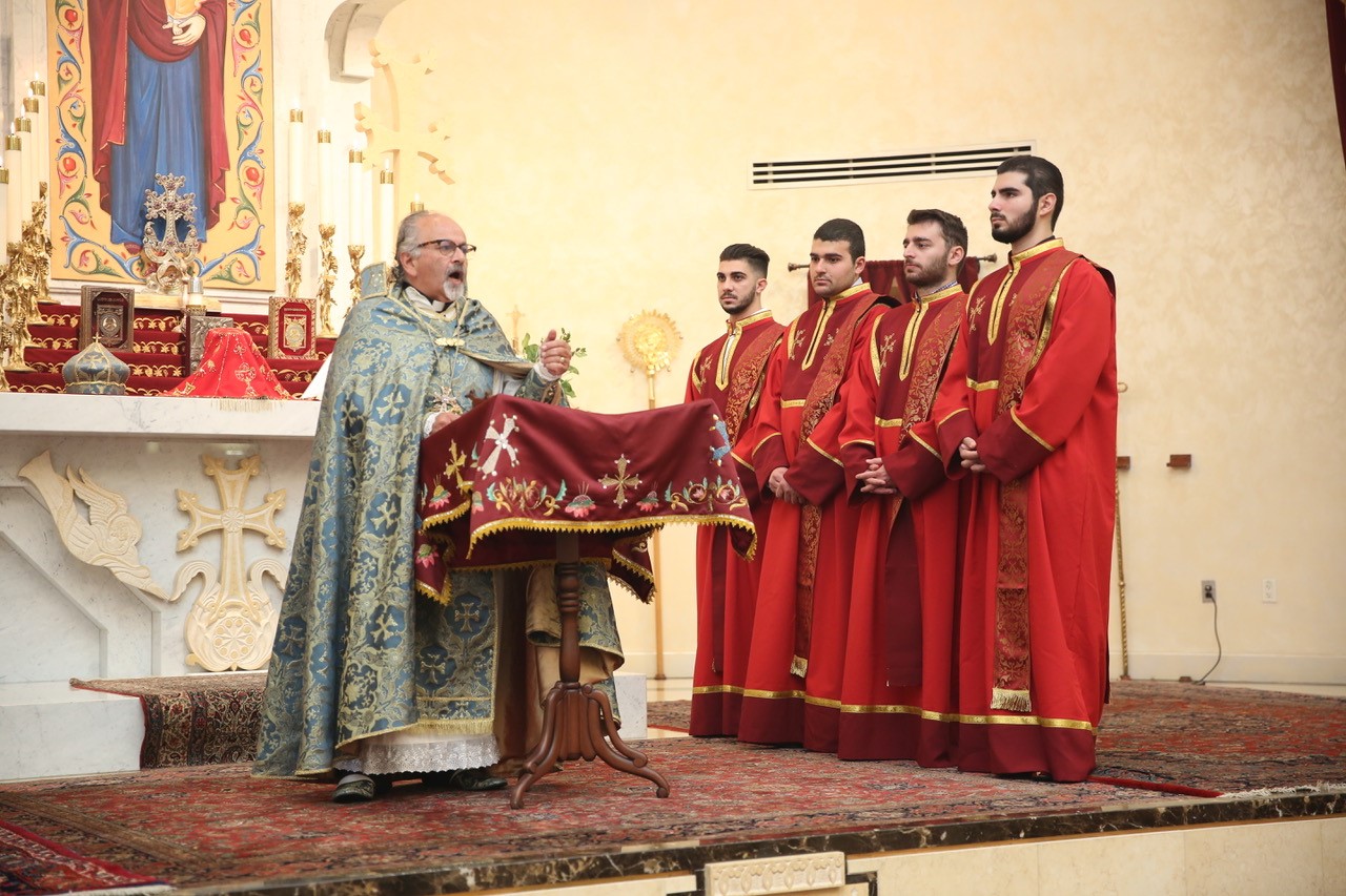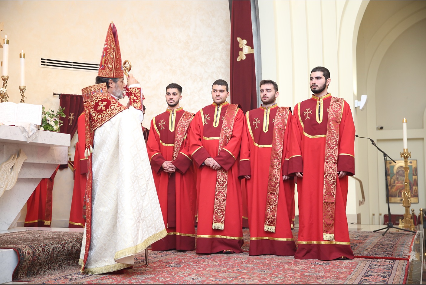 During the service, assisted by the Rev. Fr. Khajag Shahbazyan and Archpriest Fr. Manoug Markarian, the Primate ordained altar servers Arshak Ter-Hovhannisyan, Ohan Kilislian, Aron Petrosian, and Aram Dakessian into the Diaconate. Archbishop congratulated the newly-ordained deacons, extending his blessings and conveying to them his wholehearted wishes in their renewed commitment to serve our Lord and Savior Jesus Christ and to uphold the sacred traditions of the Armenian Apostolic Church.
