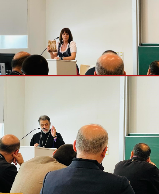 In his remarks, Archbishop Hovnan Derderian expressed his wholehearted gratitude to the organizers Dr. Jasmine Dum-Tragut, Director of the Center for the Study of the Christian East at the University of Salzburg and the Armenian Studies Division at the Center for the Study of the Christian East at the Faculty of Catholic Theology of the University of Salzburg; Bishop Tiran Petrosyan, Pontifical Delegate for Central Europe and Scandinavia, the Organizing Committee Blue Shield Austria, the Roerich Pact Society Austria, the Austrian Committee for the preservation of Armenian Cultural Heritage in Artsakh, the Mother See of Holy Etchmiadzin’s Office for Artsakh spiritual-cultural heritage preservation. Archbishop Derderian also expressed his appreciation to His Eminence Archbishop Franz Lackner, the Archbishop of Salzburg for his support of the conference.