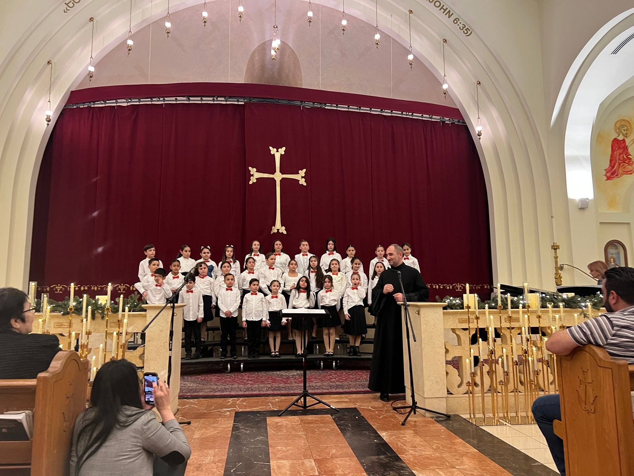 On December 22, 2024, the sanctuary of St. Leon (Ghevontiants) Armenian Cathedral of the Western Diocese of the Armenian Church of North America came alive with the angelic voices of children during a special Christmas Carol Concert. Themed “Let’s Sing Together,” the concert was performed by the “Little Melodies” Children’s Choir under the direction of Deacon Artur Vardanyan. The program featured a heartfelt repertoire of Armenian spiritual hymns, traditional folk songs, and popular children’s melodies, capturing the essence of Christmas joy and the rich heritage of Armenian music. The faithful in attendance were deeply moved by the purity and harmony of the young voices that filled the Cathedral. The children were accompanied by members of the Cathedral's Shnorhali Choir, cellist Lilit Talasyan, pianist Sofie Sargsyan and Tigran Avetisyan on the duduk.Â