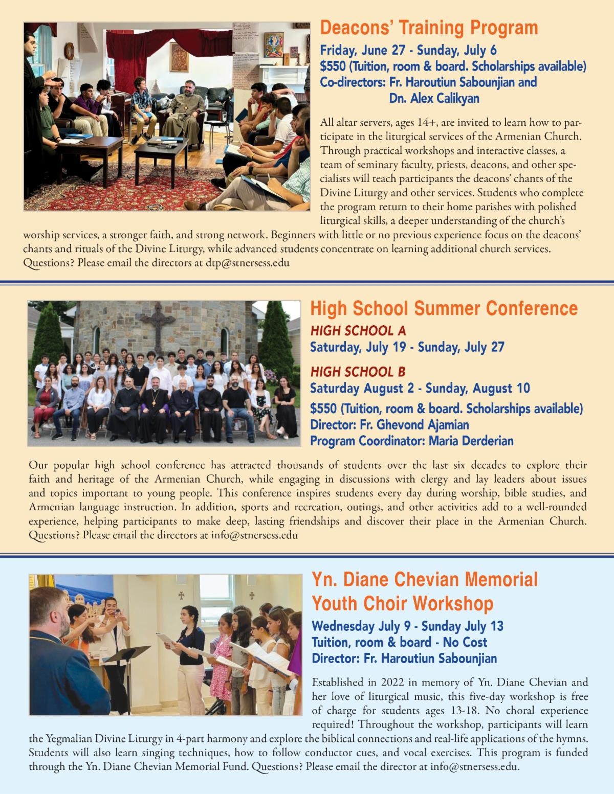 St. Nersess Armenian Theological Seminary is pleased to announce this year’s summer conferences.