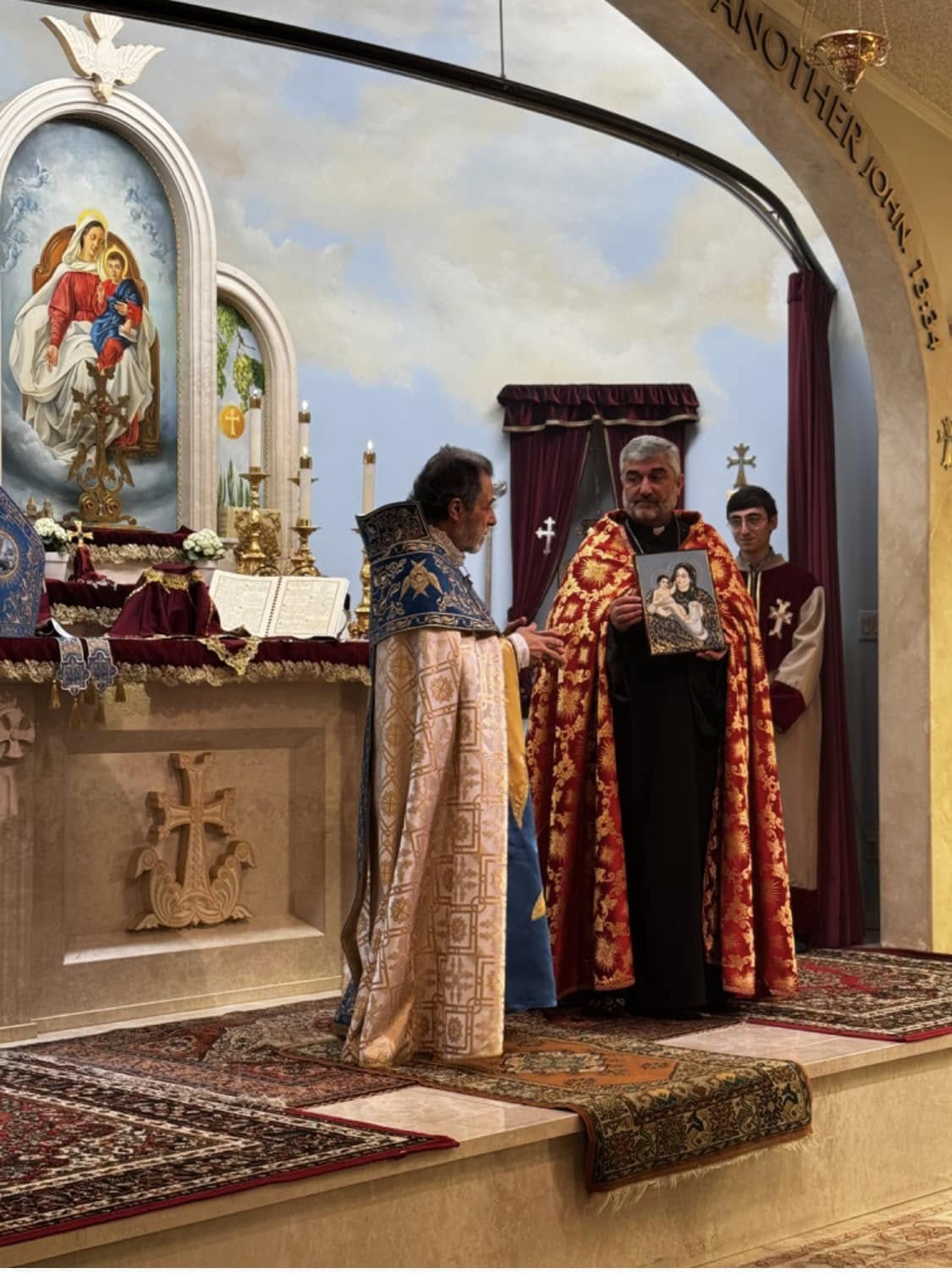 During the visit, at the request of the parish priest, Rev. Fr. Zaven Markosyan, Archbishop Derderian recognized two devoted parishioners, Misak Baghdassarian and Seda Abajian, with the prestigious Diocesan “Hye Spirit” Award, honoring their unwavering dedication and service to the parish. The Archbishop also commended Fr. Markosyan’s pastoral leadership and presented him with a miniature painting of the Holy Mother of God and the Infant Jesus as a token of appreciation.