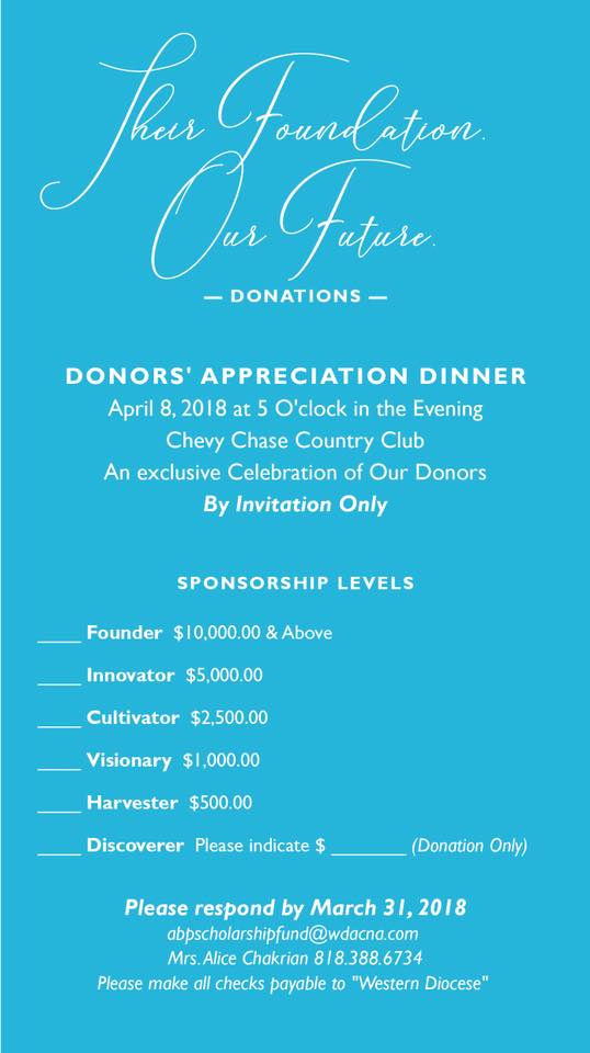 The Archbishop Hovnan Derderian Scholarship Fund's Board convened a meeting at the Diocesan Headquarters on Tuesday, March 6, 2018.Â