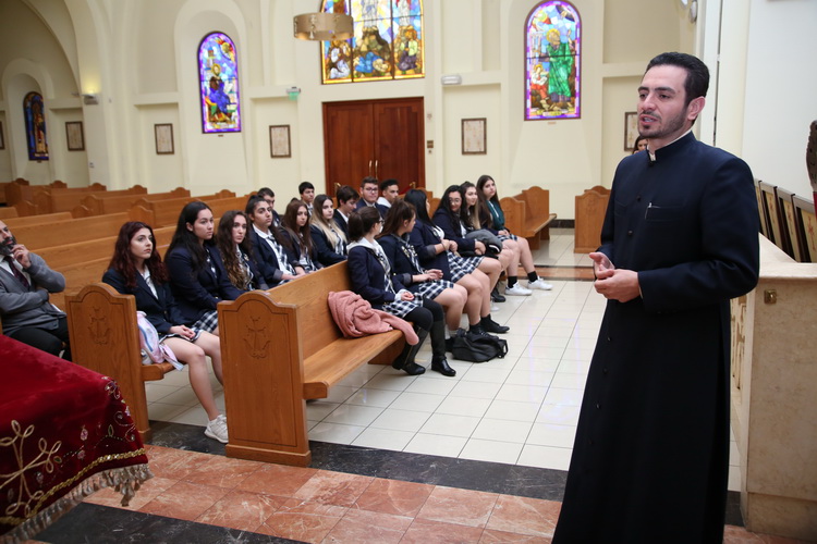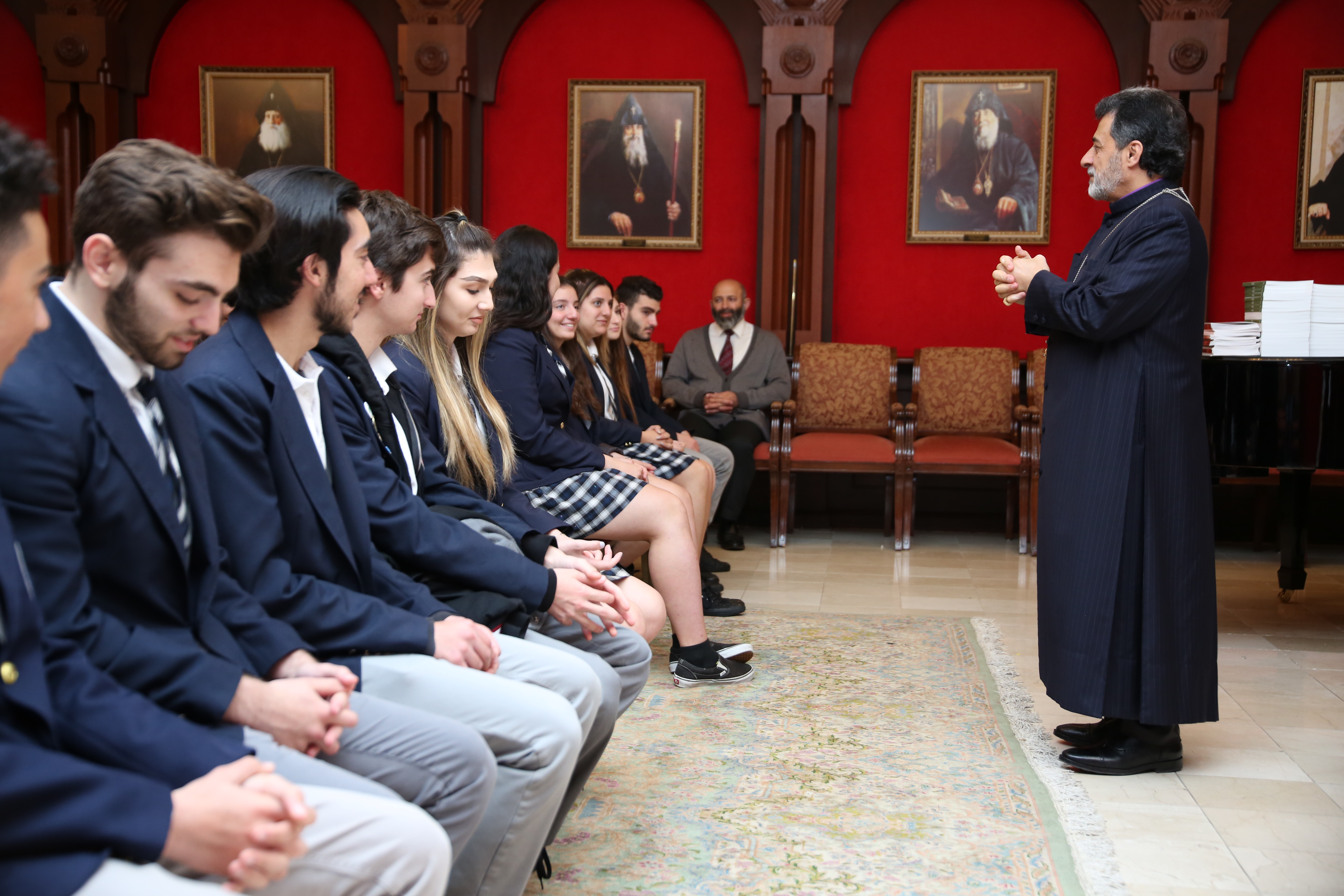 Led by their teachers, the students of the AGBU Vatche and Tamar Manoukian High School visited the Western Diocese on Wednesday, March 21, 2018.