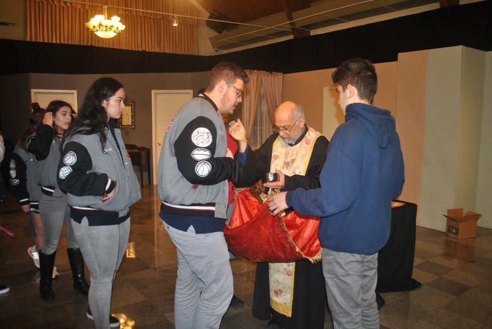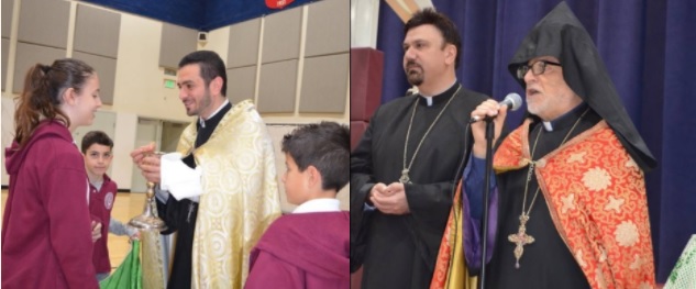 Visiting the students of AGBU Vatche and Tamar Manoukian School, the Diocesan Primate Abp. Hovnan Derderian and Archpriest Fr. Sarkis Petoyan distributed Holy Communion to the students on Friday, March 23.