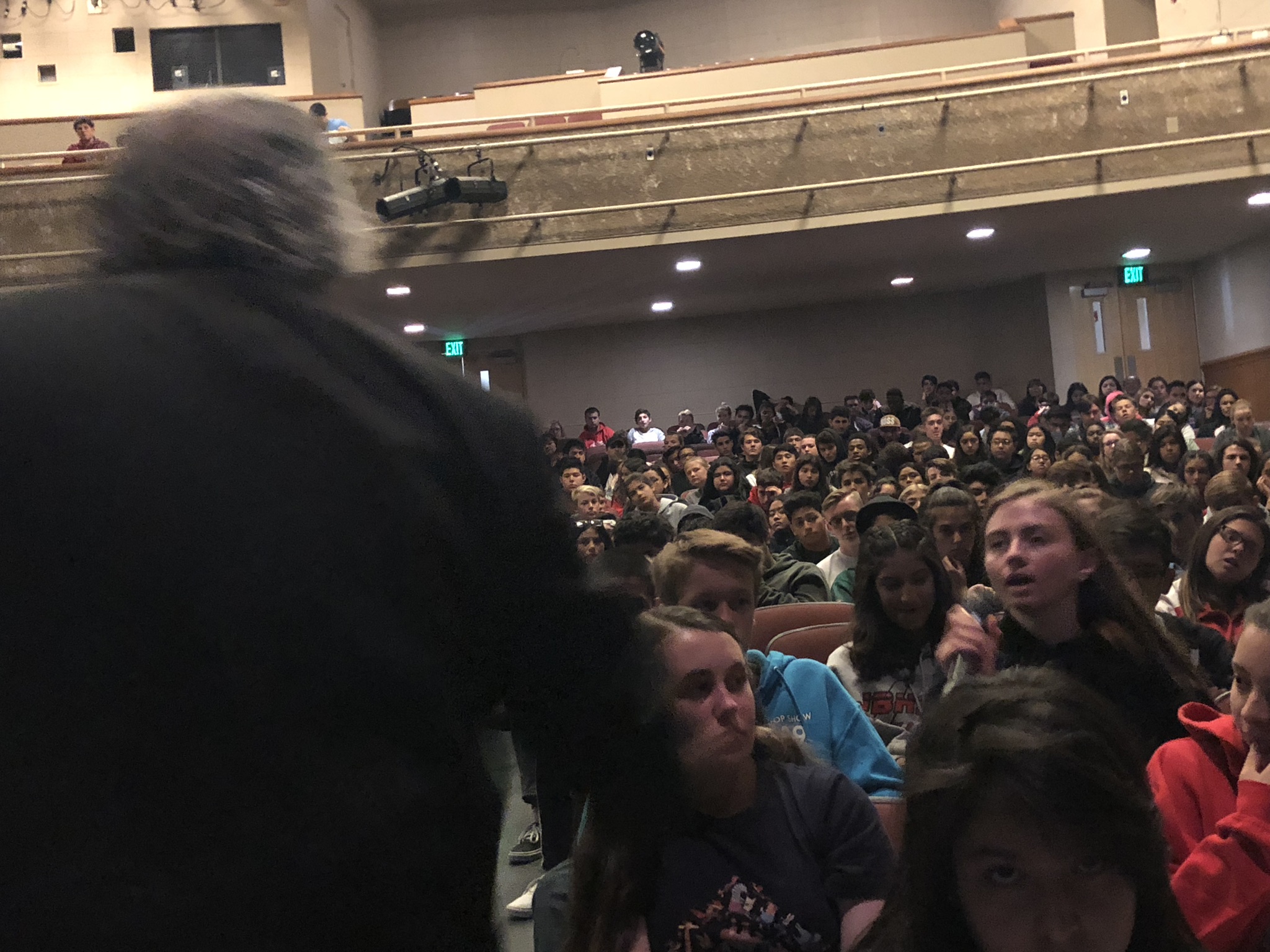 The Armenian club at the John Burrough's High School in Burbank put together an assembly where hundreds of student attended to hear a unique message by Fr. Vazken Movsesian of the Western Diocese.