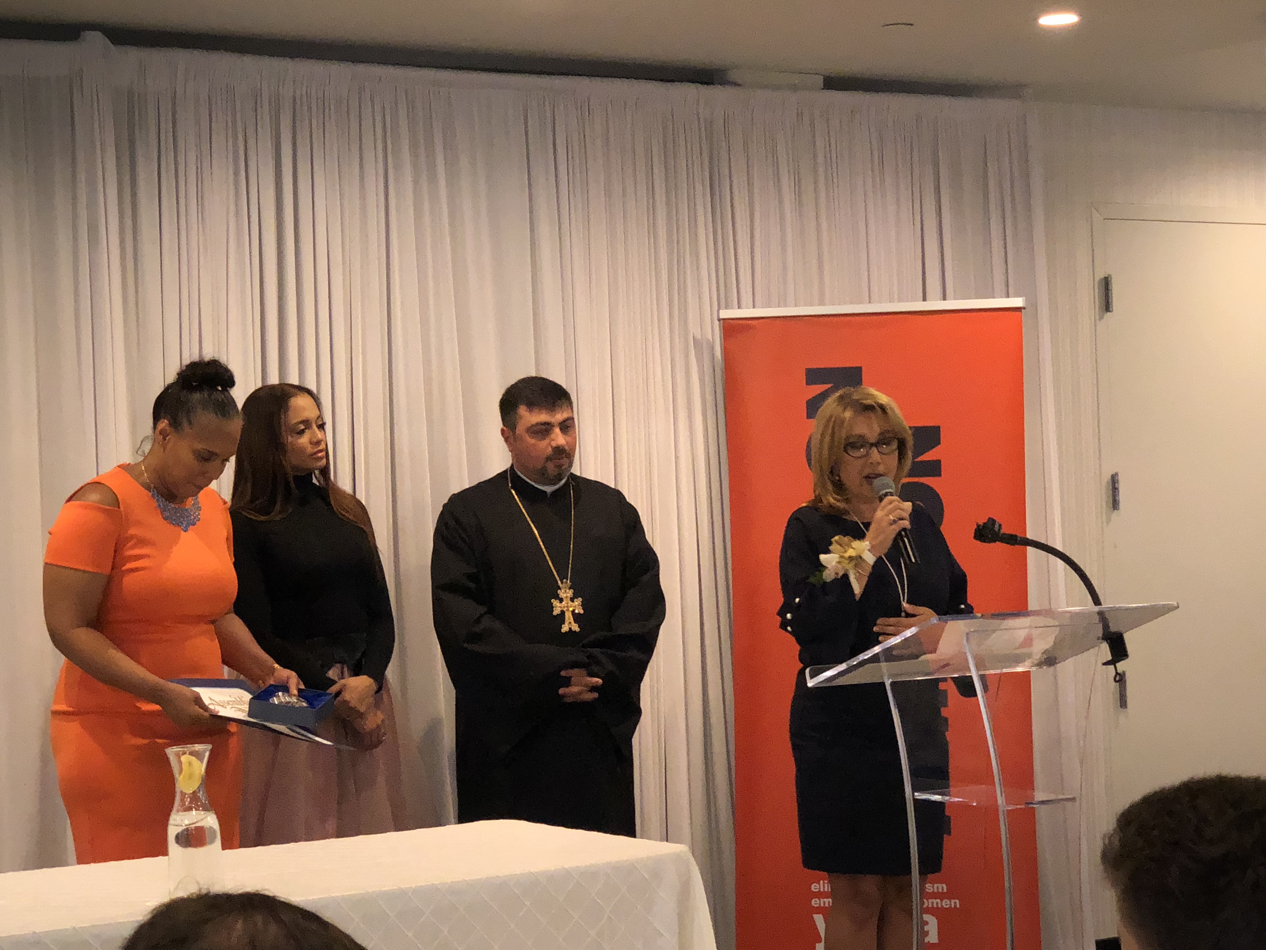The Diocesan Primate Archbishop Hovnan Derderian attended the function accompanied by the Rev. Fr. Khajag Shahbazyan, Pastor of St. Leon Armenian Cathedral. Delivering the invocation, the Primate commended the God-pleasing mission of the YWCA of empowering women, girls and families in our communities through education and intervention to achieve independence, well-being, health, self-sufficiency and a life free from violence, and to draw people together to attain peace, justice, freedom and dignity for all andcongratulatedall honorees on the auspicious occasion.