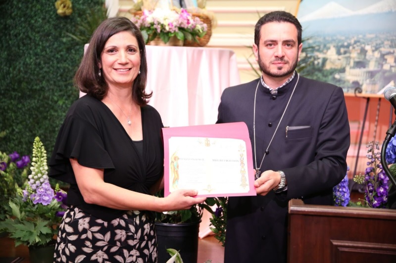 Welcoming words were delivered by Araxie Boyamian Co-Chair of the Hampartzum Committee, who acknowledged the presence of the number of Diocesan committees and organizations namely, Cindy Norian Chair of Ladies Auxiliary of the Western Diocese, Alice Chakrian, Chair of Agape Circle, Abp Hovnan Derderian Fund and Jr. God fathers, Taline Yacoubian Babikian Chair AGBU Western District, Nicole Nishanian Chair of Armenian International Women’s Association Los Angeles Affiliate, Shoghig Vartzbedian, Chair AGBU Pasadena Young Ladies Committee, Professor Emeritus Silva Karayan, and Diocesan benefactors, Mrs. Sybille Aprahamian, Mrs. Flora Dunaians, and Mrs. Hilda Fidanian.