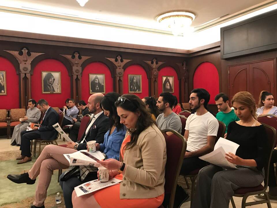 Mihran Toumajan, the Director of the Western Region of the Armenian Assembly of America, was the guest speaker Nerouj monthly mixer, which was held at the Western Diocese on June 15, 2018. In an informative presentation, Mr. Toumajan highlighted the crucial mission of the Armenian Assembly of America, the largest, non-partisan Armenian-American advocacy organization in the United States, and introduced internship opportunities to the youth.