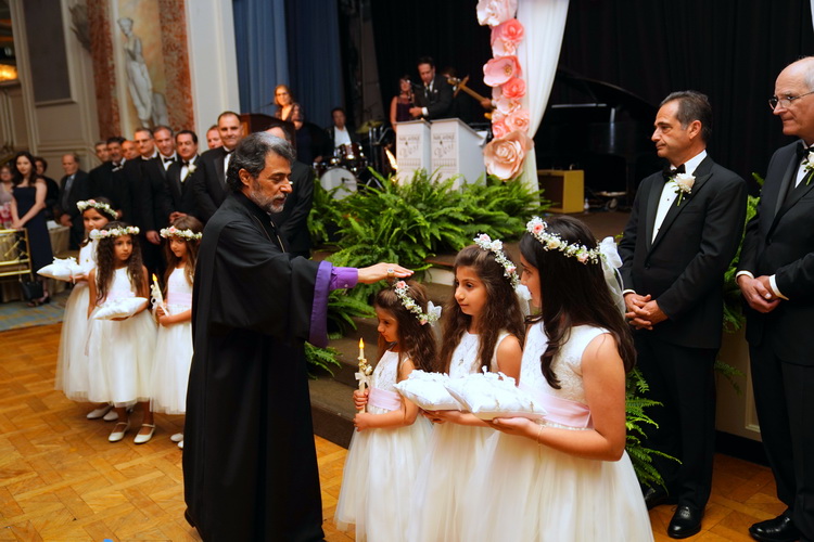 With an exquisite bouquet of flowers in her gloved hand, each young lady enters the stage and stands framed by a beautiful floral backdrop; the radiant debutante then makes her traditional curtsy to society in her beautiful white gown as she is formally introduced by the Master of Ceremonies. Fathers and daughters dance the first dance of the evening, followed by Armenian music to which debutantes and escorts perform traditional dances as veneration to their homeland.