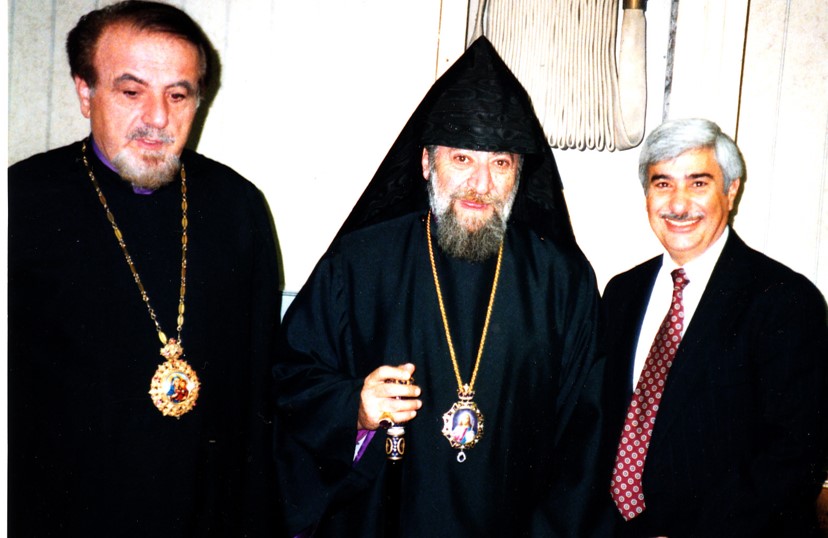 (From L to R: His Eminence Archbishop Vatche Hovsepian, His Beatitude Abp. Karekin Kazanjian, late Armenian Patriarch of Constantinople and Dr. Vahram Biricik)