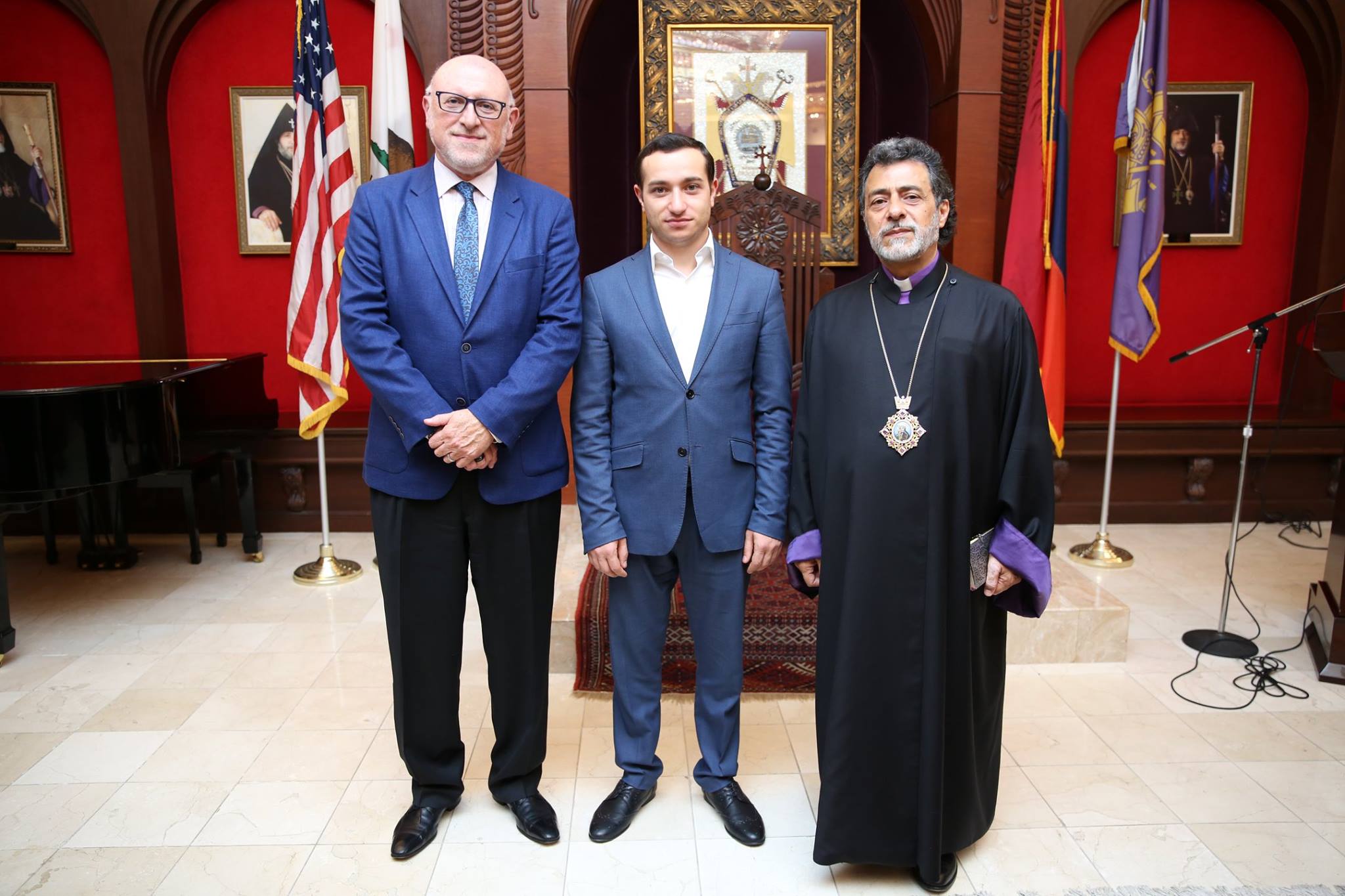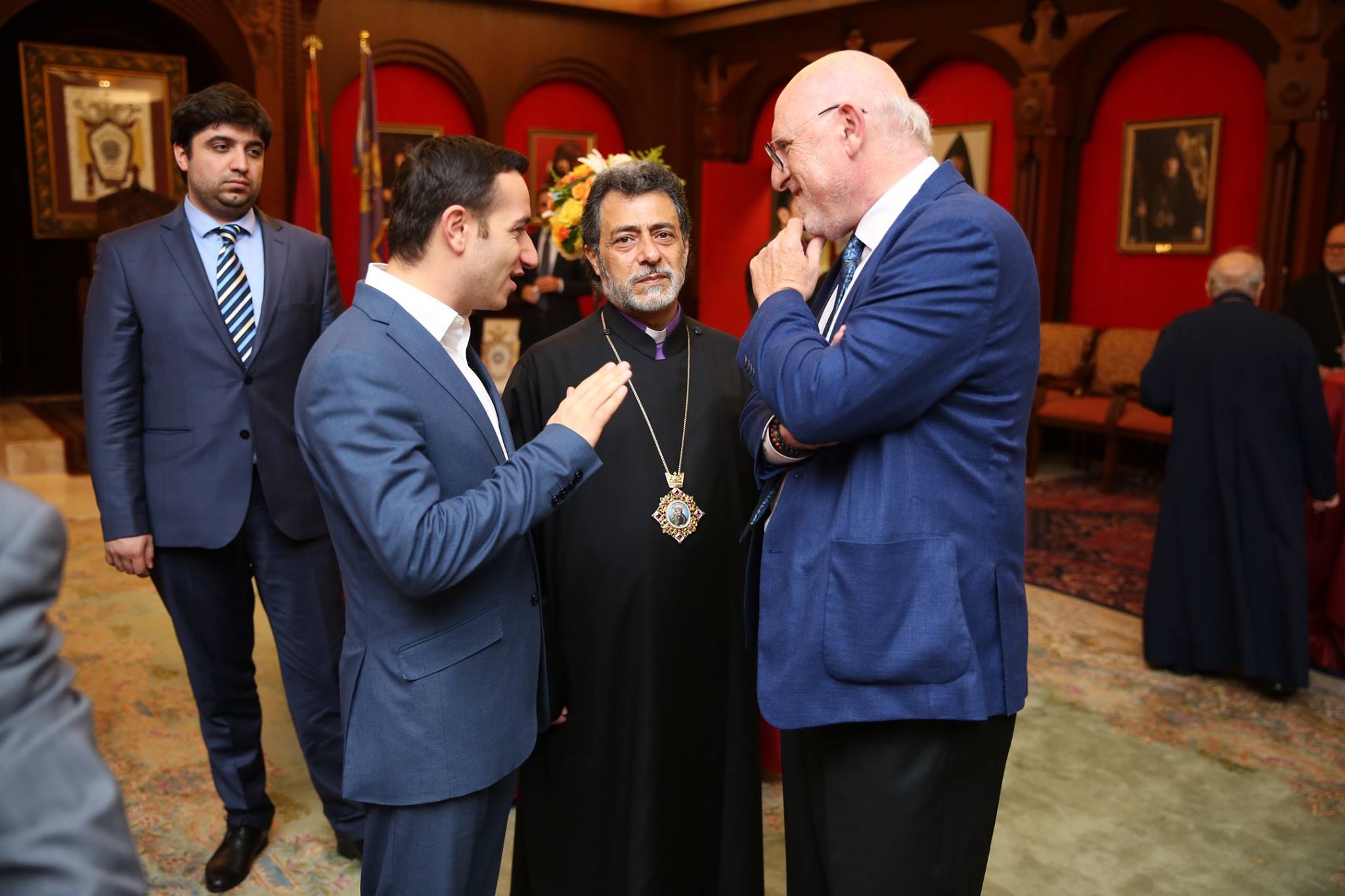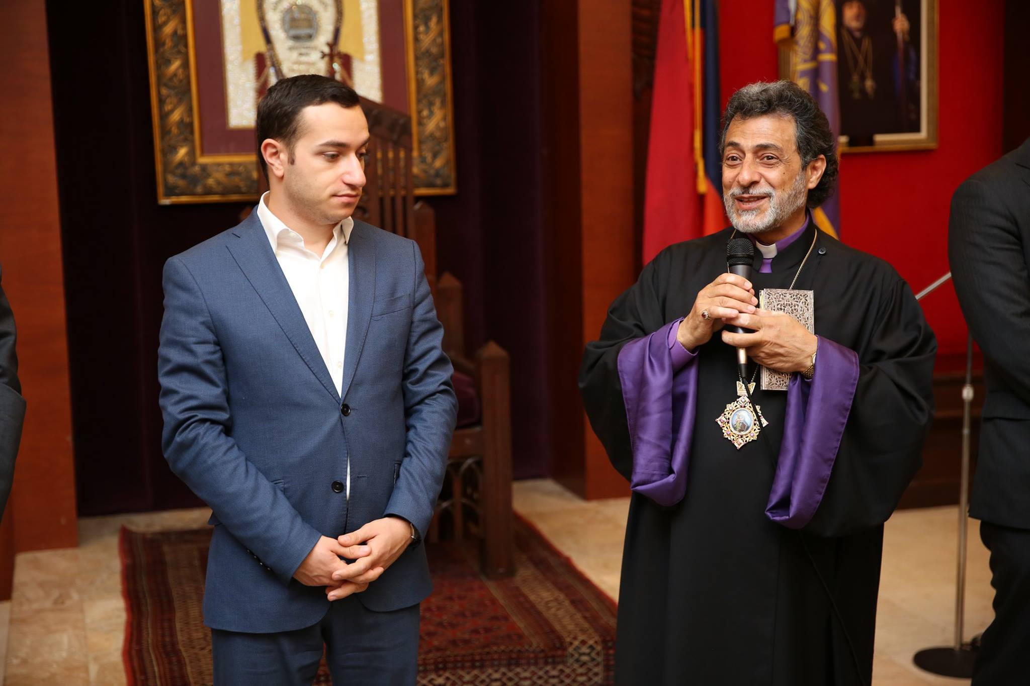 After touring the Cathedral with his delegation, the esteemed guest was led to the Hampar Family Room where he informed about the activities, missions and programs being implemented by the Ministry to attract investments, develop tourism and enhance foreign exchange student programs in Armenia.