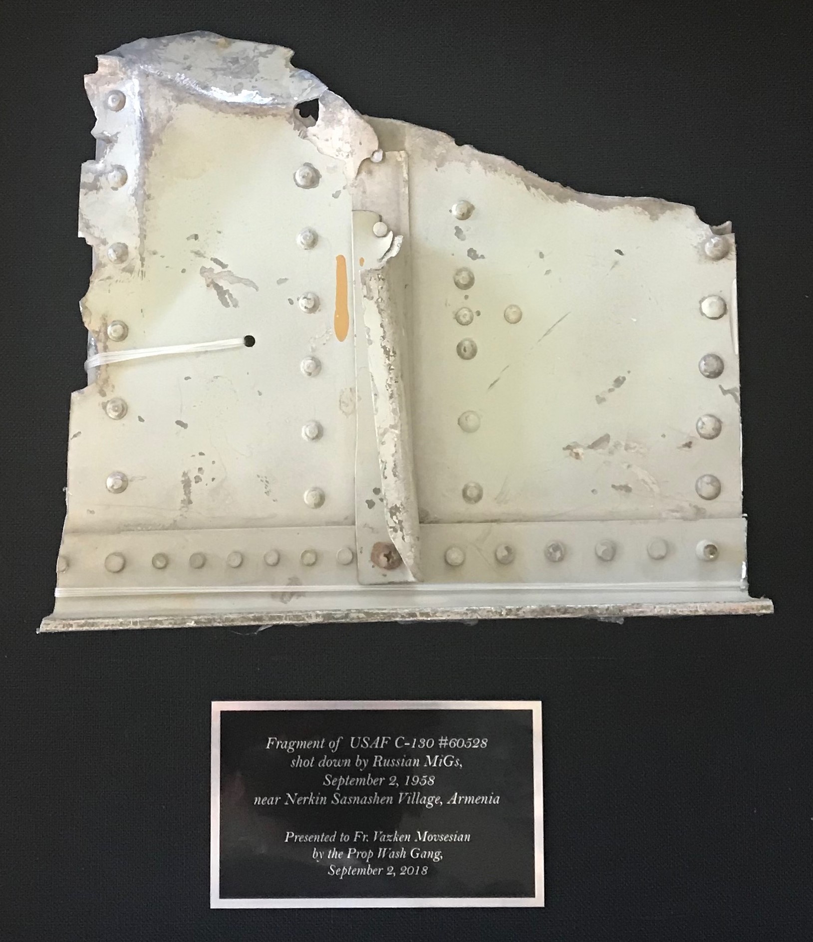 After I offered the ancient requiem prayer of the Armenian Church and remembered all 17 of the fallen servicemen by name, Chief Lonnie honored me in a manner I will forever remember. On behalf of the Prop Wash Gang he presented a shadow box with an actual piece of the downed-plane. Here I would have a tangible reminder of the sacrifice made by these men and the ever-essential necessity to stay vigilant against injustice. He also gifted me Larry Tartâs book, âThe Price of Vigilanceâ signed by the author. These are the treasures, coupled with the stories I heard, that I return to the Diocese to share with Armenian men and women of all ages.Â