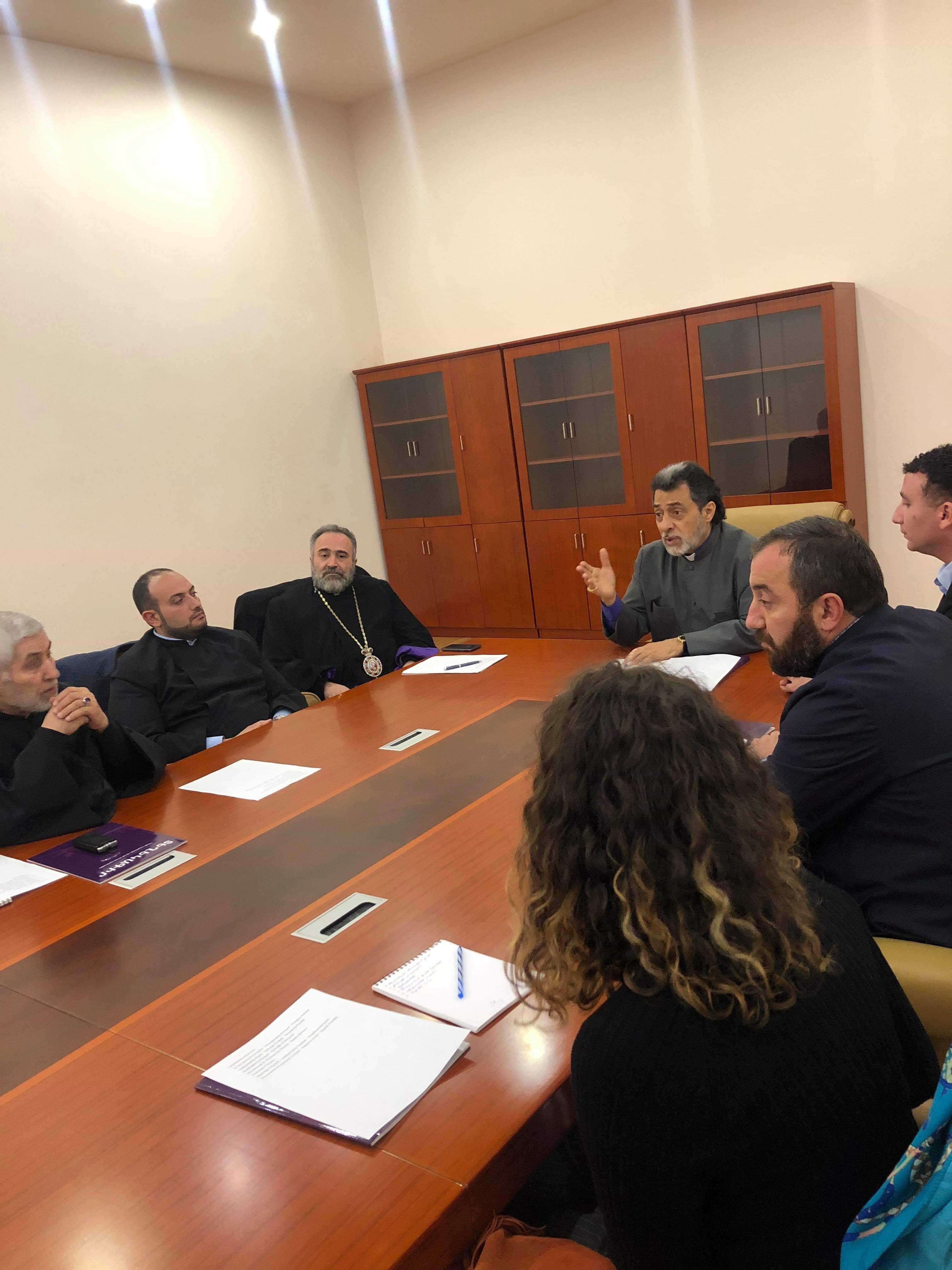 On November 1, the clergy met with Student Council representatives of various universities in Armenia. Deacon Gegham Avetisyan, Deacon-In-Charge of University-Church Relations, participated in the meeting, which was presided by H.E. Archbishop Hovnan Derderian. Topics of discussion included the collaboration between universities and the Armenian Church, annual meetings with His Holiness Karekin II, Supreme Patriarch and Catholicos of All Armenians, and the establishment of pilgrimages.