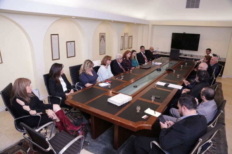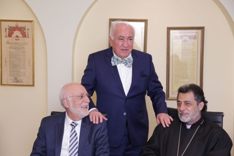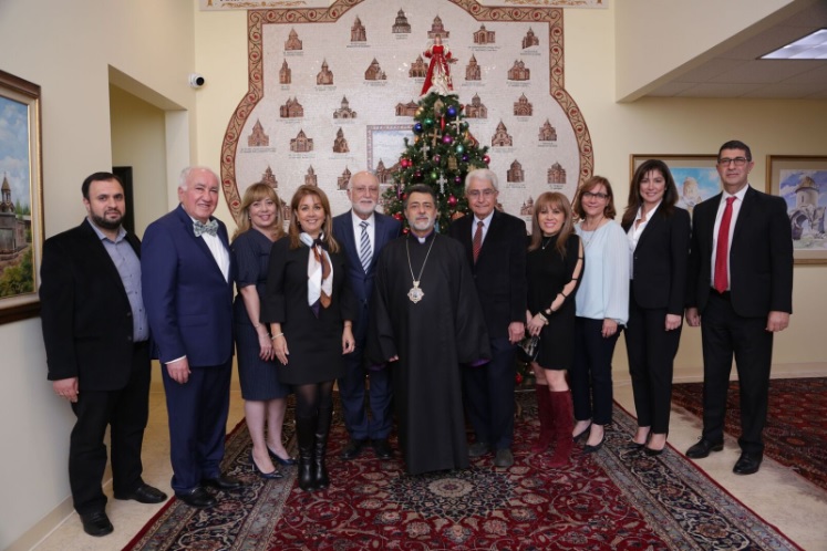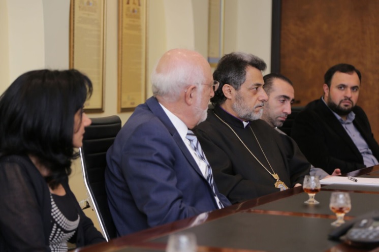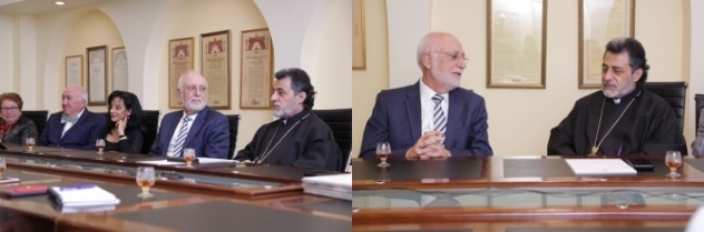 The Diocesan Primate His Eminence Archbishop Hovnan Derderian welcomed Dr. Armen Der Kiureghian, President of the AUA to the Diocesan Headquarters in Burbank on December 11th. Dr. Kiureghian was accompanied by Dr. Haroutune Armenian, President Emeritus of the American University of Armenia and leader of the Turpanjian Rural Development Program; Dr. Alina Gharabegian, Interim Dean, College of Humanities & Social Sciences at the American University of Armenia; Taleen Babayan, Associate Director of Communications, Development & Stewardship; Marianna Achemian, Assistant Director of Development; Dr. Kris Mirzayan AUA Pillar and visiting professor; and Dr. Maral Anjargolian, a Pillar of the AUA.