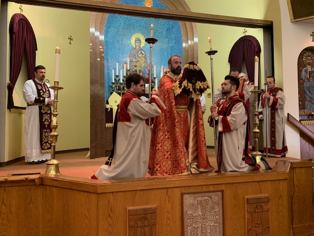 His Grace Bishop Armash Nalbandian, Primate of the Diocese of the Armenian Church of Damascus was the celebrant and homilist at St. James Armenian Church of Los Angeles on Sunday, December 16, 2018. His Grace was assisted at the Holy Altar by the Rev. Fr. Haroutioun Tachejian, the Rev. Fr. Vazken Movsesian and the deacons of the parish.