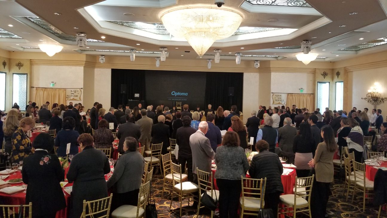 The spirit of Christmas at the Cathedral continued in the evening during a fundraising dinner to gather support for the rebuilding of the Moshatagh School in Artsakh’s Kashatagh region. The purposeful event, hosted by the St. Leon Ladies Society, took place at Nazareth and Sima Kalaydjian Hall and kicked off the Western Diocese’s theme for 2019, Year of the School, as designated by Archbishop Derderian, which follows on the heels of last year’s impactful Year of the Youth.