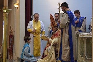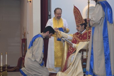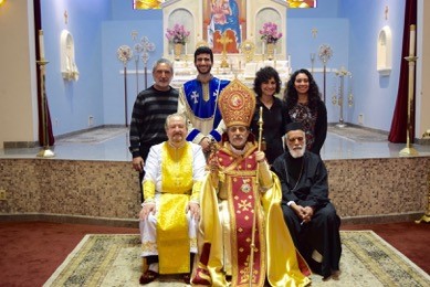 On March 3, 2019, the Diocesan Primate Archbishop Hovnan Derderian paid a pastoral visit to St. Andrew Armenian Church of Cupertino. His Eminence celebrated the Divine Liturgy and delivered the homily on the Feast of Great Paregentan. During the service, the Primate granted altar server David Madey the four-minor orders of Acolyte and Christine Abrahamians, Lucine Oganesyan and Deacon Levon Barsoumian received Certificates of Blessing and Commendation, recognizing their dedicated service to the Cupertino parish.