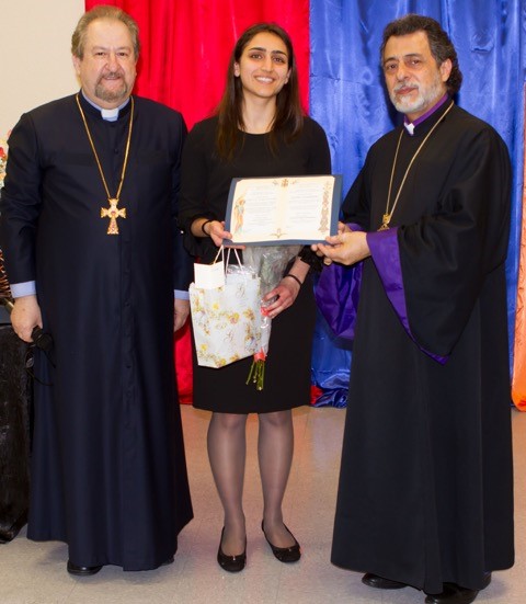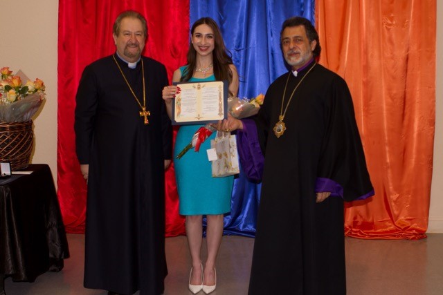Following the service, Archbishop Derderian presided over a banquet where parishioners Edma Dumanian, John Kibarian and Gloria Chen were honored with the Diocesan Hye Spirt medal in recognition of their selfless service to St. Andrew Armenian Church. The Charekian family were the recipients of a Certificate of Blessing and Commendation as an exemplary Christian family, loyal to the teachings our Lord and Savior Jesus Christ and the Armenian Church.