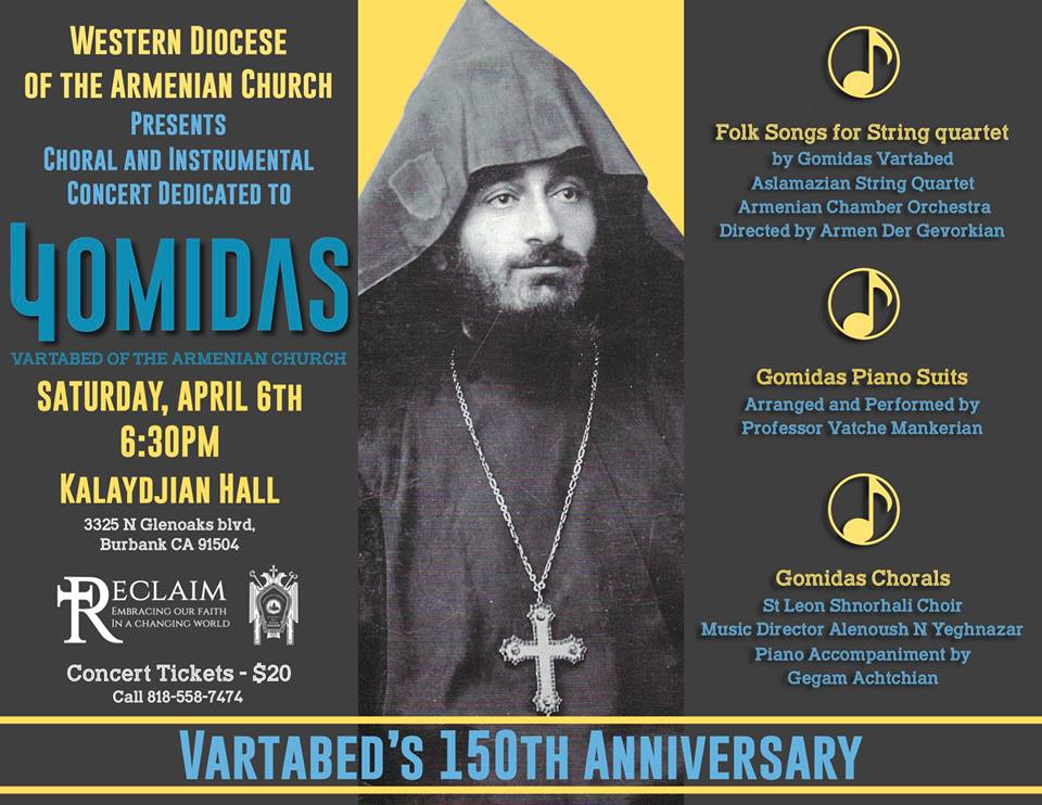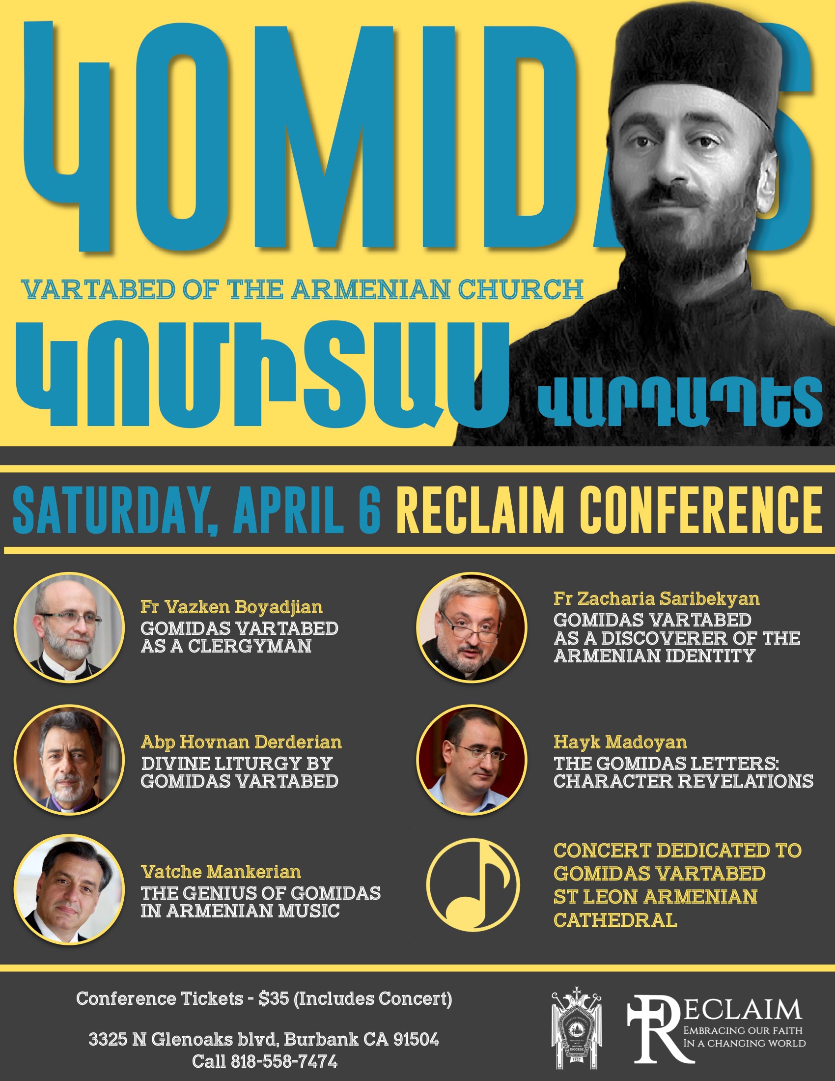 The third annual Reclaim Conference is scheduled for April 6, 2019 at the Western Diocese of the Armenian Church in Burbank. The celebrated and revered Armenian Church priest, Gomidas Vartabed will be the focus of this year’s gathering.