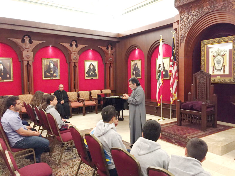 Following their meeting with the Primate, the students were led on a tour of St. Leon Armenian Cathedral and the Zorayan Museum by the Rev. Fr. Yeremia Khachatryan, Visiting Pastor of Ararat Home of Los Angeles and prior to their departure, were treated to a pizza lunch.