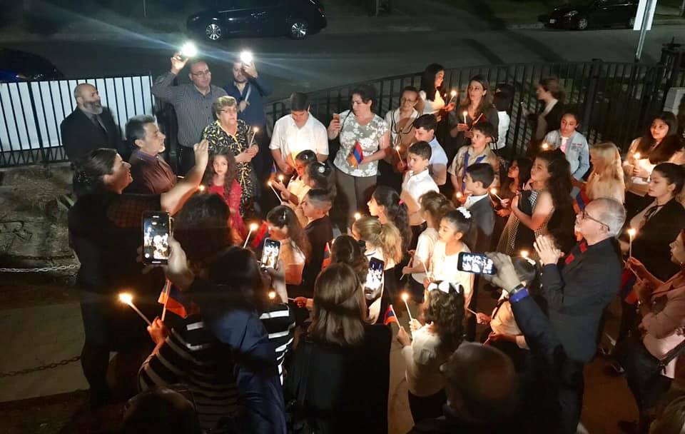 Following the program, the students led a processional to the church courtyard where a candlelight vigil was held in memory of the martyred saints of the Armenian Genocide.
