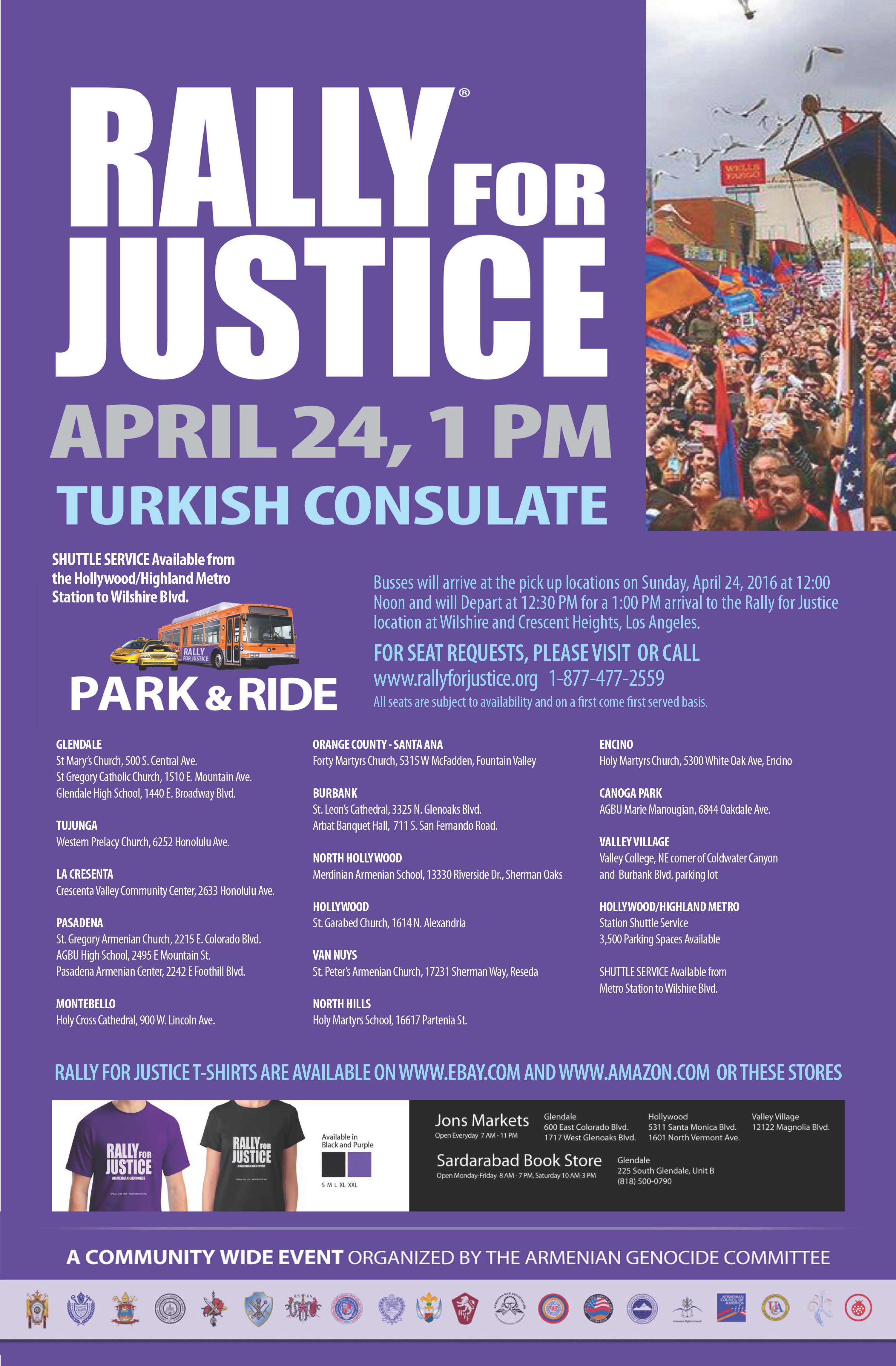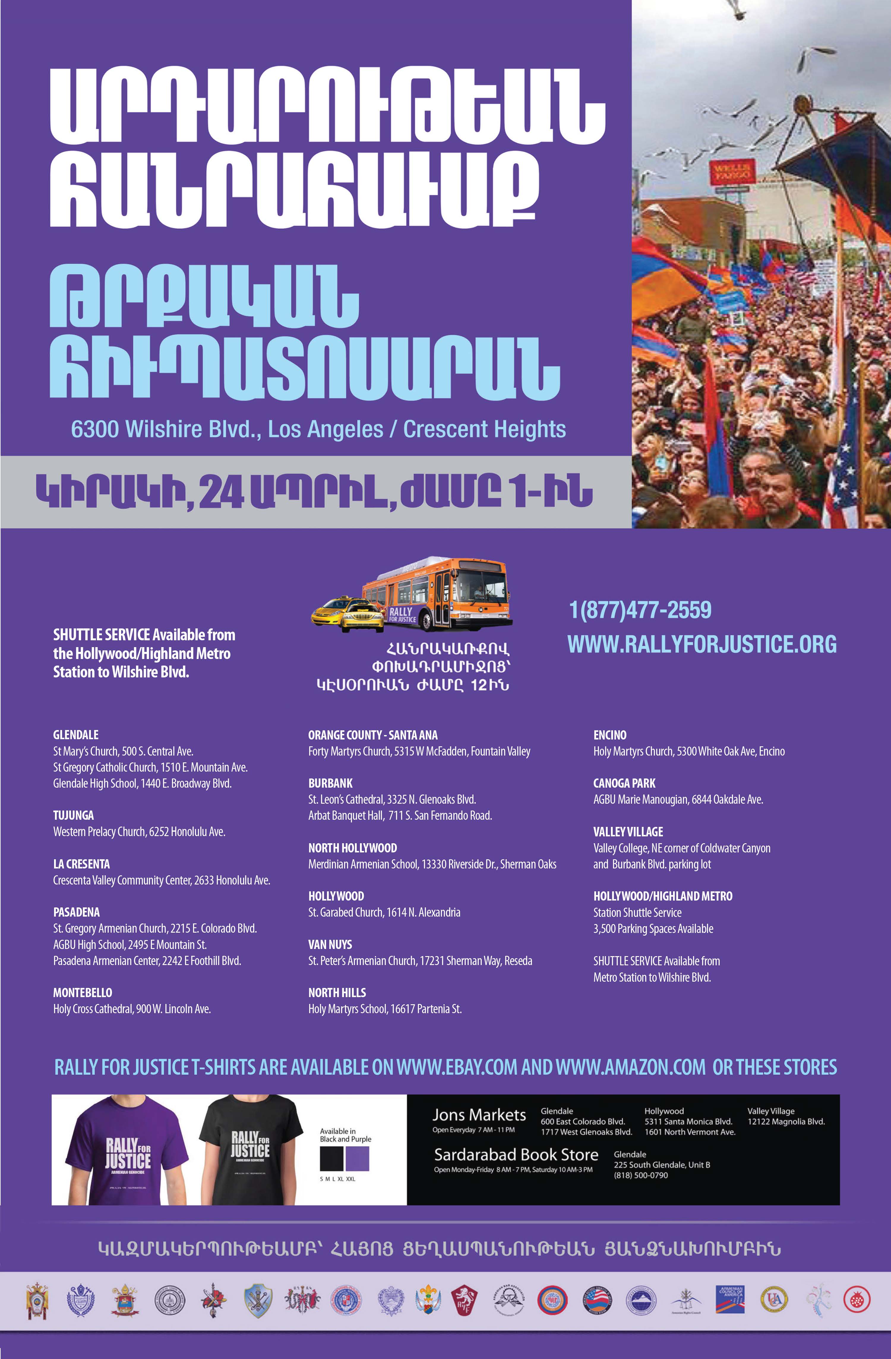 3. Buy Your Official Rally T-Shirt - Buy your official Rally For Justice t-shirts from Jons Marketplace locations, Sardarabad bookstore, and online at www.Amazon.com and www.eBay.com. Proceeds from all sales will go entirely toward funding the Rally for Justice.