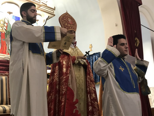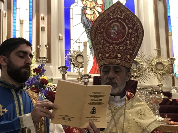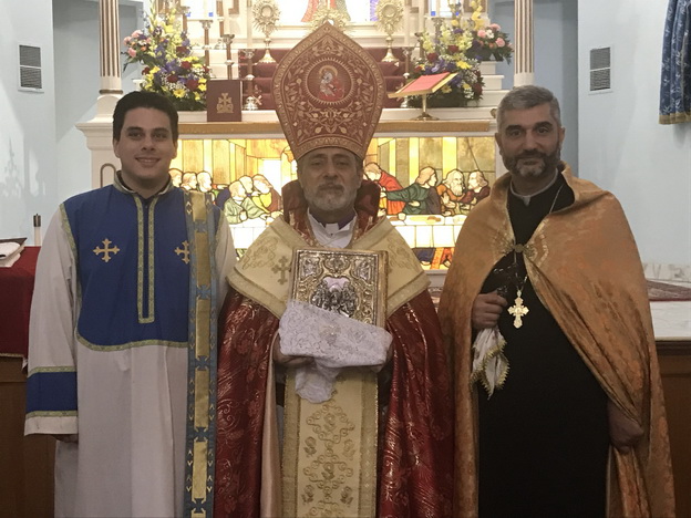 During the service, Archbishop Derderian ordained altar server David Safrazian into the Diaconate, commending his selfless service rendered to the Armenian Church and encouraging him to uphold the sacred traditions of the world’s oldest Christian nation. The Pontifical Encyclical of His Holiness Karekin II, Supreme Patriarch and Catholicos of All Armenians with which the Pontiff bestowed upon the pastor of the host parish the right to be vested with a floral cloak, was presented to the Rev. Fr. Zaven Markosyan by Archbishop Derderian. The Primate commended Fr. Markosyan’s pastoral leadership and dedication to serving the flock of Christ.