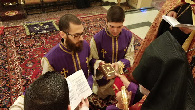 During the celebration of the Divine Liturgy at St. Leon Armenian Cathedral, with the participation of the Rev. Fr. Zohrab Manasyan, the Rev. Fr. Khajag Shahbazyan, Pastor of the Cathedral, and the deacons, the Diocesan Primate ordained Allen Vartanian and Grigor Kupelyan as a sub-deacons. The Primate extended his blessings to the newly ordained stolebearers and exhorted them to uphold the teachings of our Lord and Savior Jesus Christ and to renew their calling to service in the Armenian Apostolic Church.