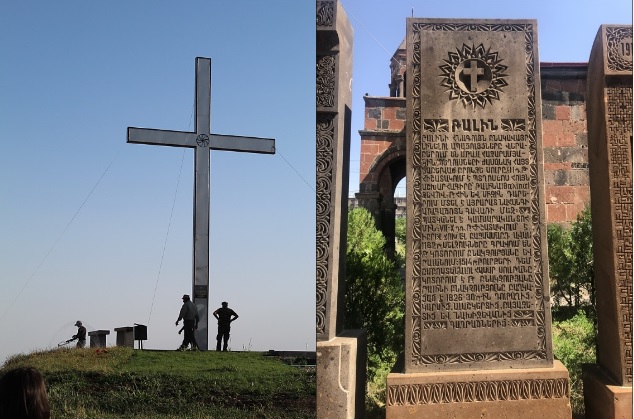 Main Photo Caption: At the Crash site monument: Fr. Vazken, Anna Galachyan (assisting Fr. Vazken), Yeretsgin Hripsime & Fr. Tade with one of their daughter's Tatev.