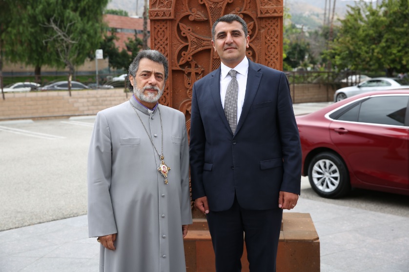 His Excellency Mr. Varuzhan Nersesyan, Ambassador Extraordinary and Plenipotentiary of the Republic of Armenia to the United States of America, paid his first official visit to the Western Diocese of the Armenian Church of North America on Thursday, July 25, 2019. Ambassador Nersesyan was accompanied by His Excellency Armen Baibourtian, Consul General of the Republic of Armenia in Los Angeles and His Excellency and Counselor Varazdat Pahlavuni.