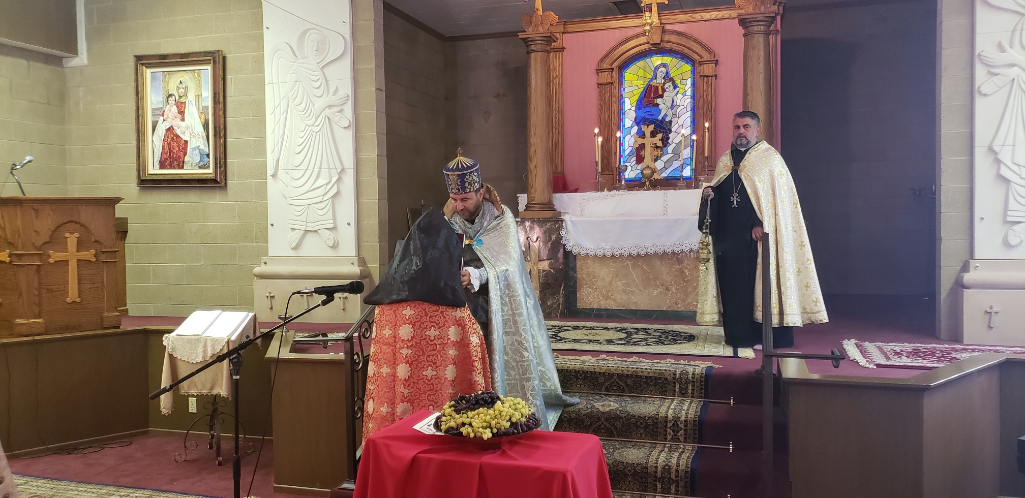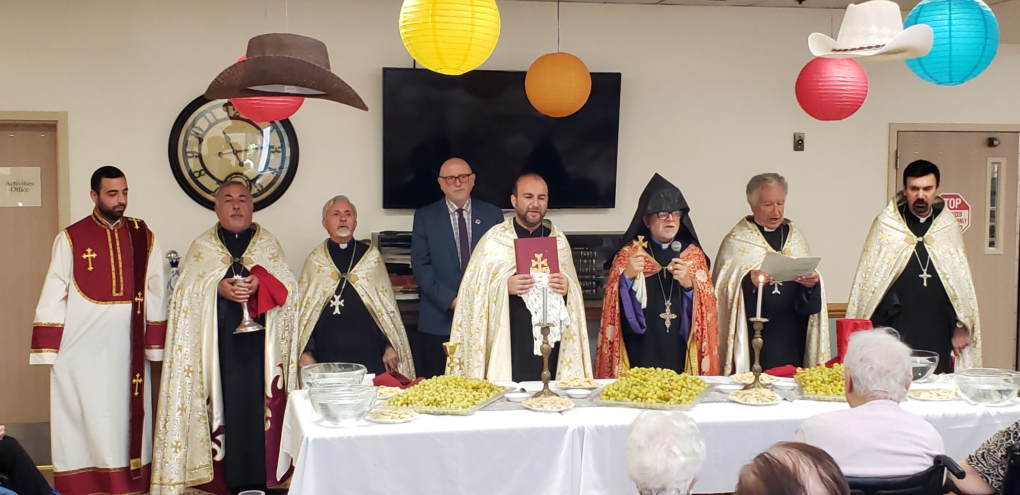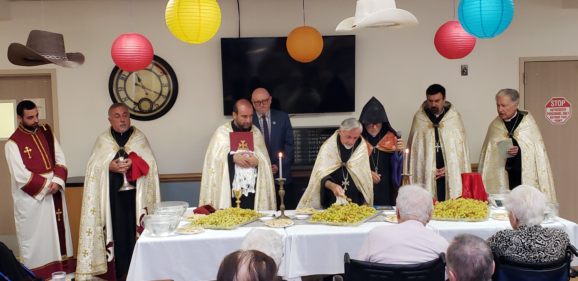 The Divine Liturgy was celebrated at the Chapel by the Rev. Fr. Yeremia Khachatryan, Visiting Pastor of Ararat Home. The celebrant priest was also the homilist who in his sermon highlighted the significance of the ceremonial rite of the blessing of the grapes in the Armenian Apostolic Church.