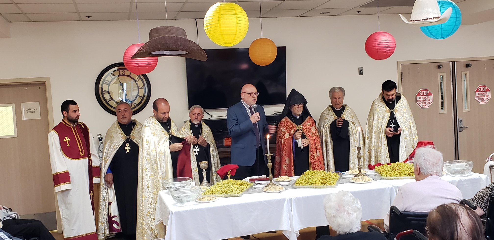 Later that afternoon, Archpriest Fr. Sarkis Petoyan, the Rev. Fr. Vazken Movsesian and the Rev. Fr. Yeremia Khachatryan visited the residents at Ararat Home in Eagle Rock where they performed the Blessing of the Grapes ceremony.