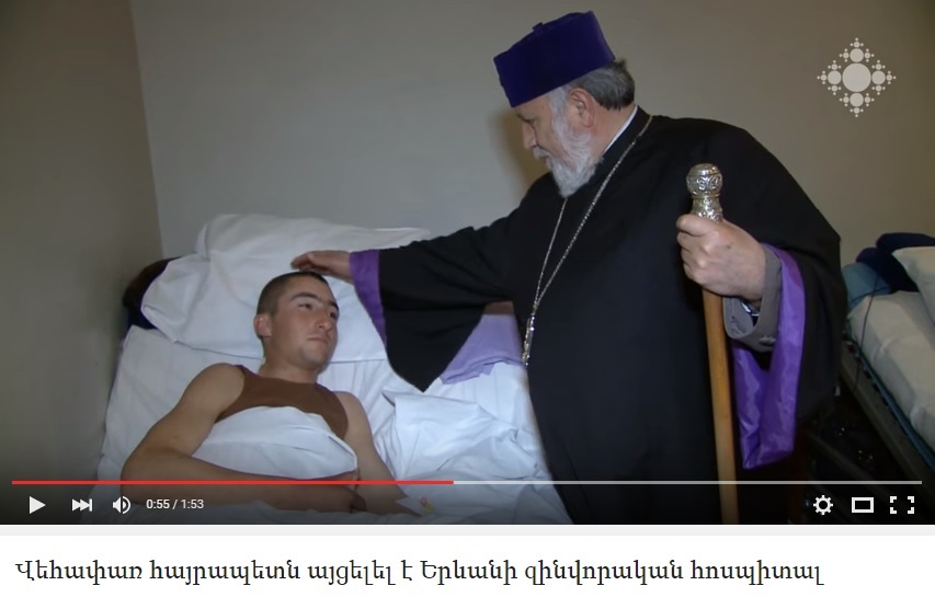 On April 4, 2016, H.H. Karekin II, Supreme Patriarch and Catholicos of All Armenians Visits Wounded Armenian Soldiers in Military Hospital in Yerevan.