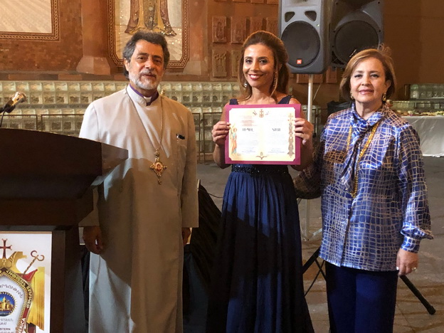 Welcoming remarks was addressed by Araxie Boyamian, Chair of St. Leon Armenian Cathedral Ladies Guild who welcomed the guests and said "Tonight's Gathering is a Musical Tribute to Artist Istanbul born renowned singer Sibil who shaped a new style, and opened a new door of hope to the Armenian music in the Diaspora for the future generation." She added that Sibil is recipient of many Awards namely: “Magical Voice at the Armenian Music Awards in Moscow, “Armenian Music Ambassador Award” in Yerevan for her efforts in spreading and preserving Armenian song. She was among the celebrities who received “Best Singer in the Diaspora Award” at “World Armenian Entertainment Award” in Aqua Caliente in California. During her musical album presentation “LOVE” at Moscow Cinema in Yerevan Sibil received “Gomidas Medal “from the Minister of Diaspora. Also she is granted “The Gold Medal” of the Mayor of Yerevan for her contribution to the dissemination of Armenian music and for her charities in Armenia. Finally but not least in 2015 she was awarded with the “Medal of Gratitude” for her participation and contribution to Pan Armenian games.