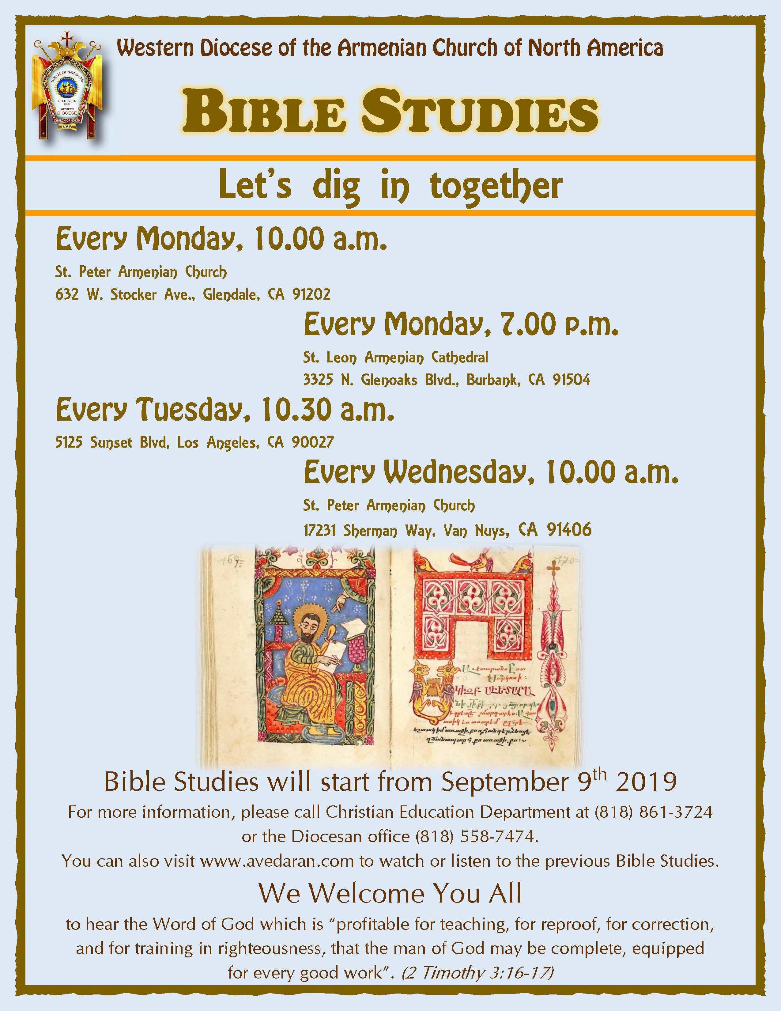 Mondays – 7 PM (St. Leon Armenian Cathedral – 3325 N. Glenoaks Blvd., Burbank, CA 91504)