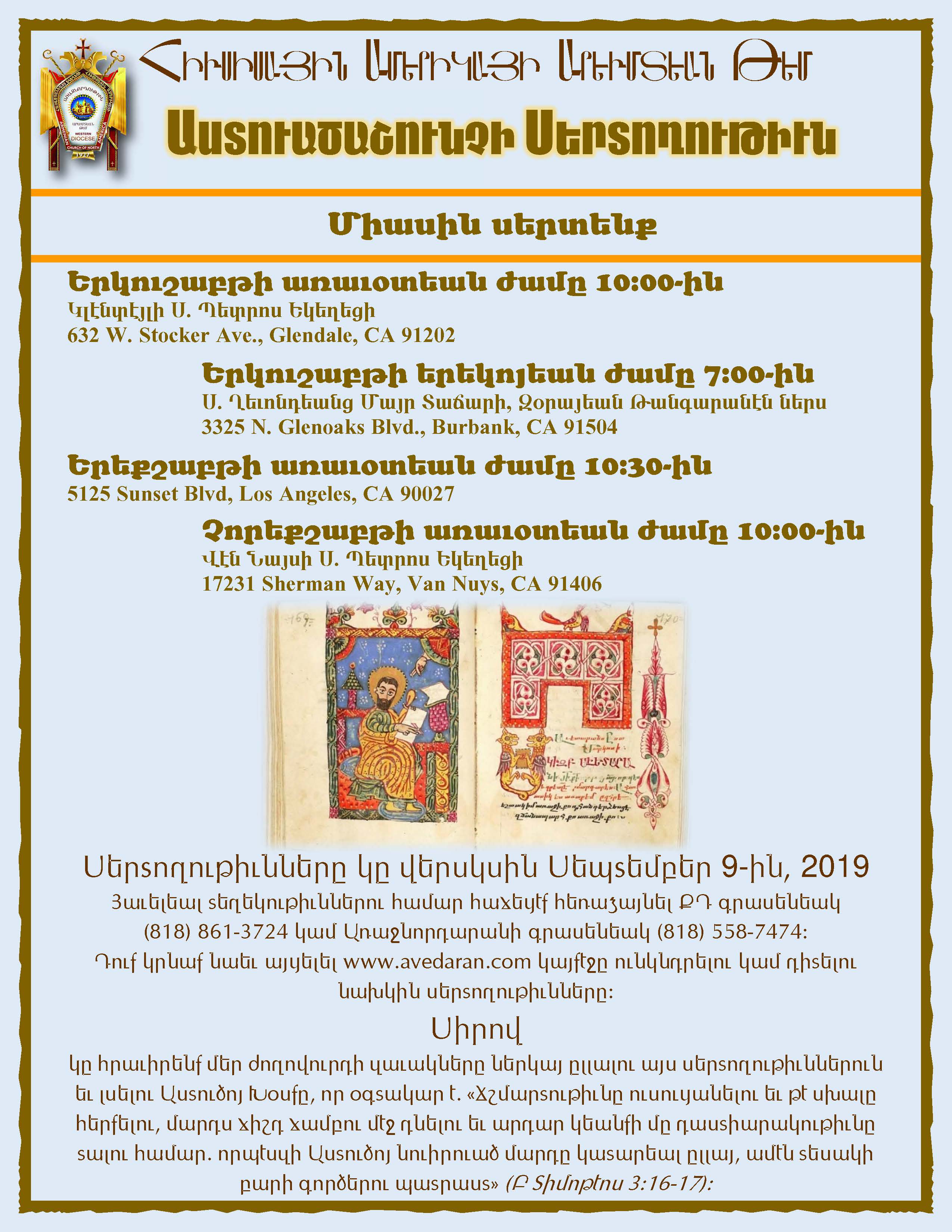 Wednesdays – 10 AM (St. Peter Armenian Church of Van Nuys – 17231 Sherman Way, Van Nuys, 91406)