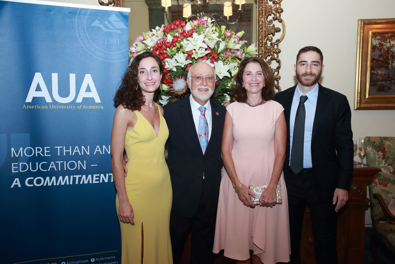 Der Kiureghian’s daughter, Naira and son, Sebouh added a personal touch to the evening when they talked about their father’s dedication to AUA. “A defining characteristic of my father has been his readiness to roll up his sleeves and make sacrifices when his homeland needed him,” noted Sebouh. “At the graduation party, I was amazed at how students were competing with each other for an opportunity to take selfies with him. Throughout my years in both undergraduate and graduate schools, I’ve never seen students so excited about their university president,” added Naira.