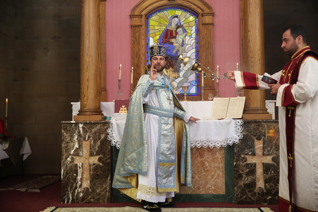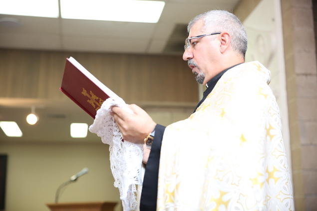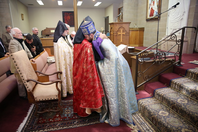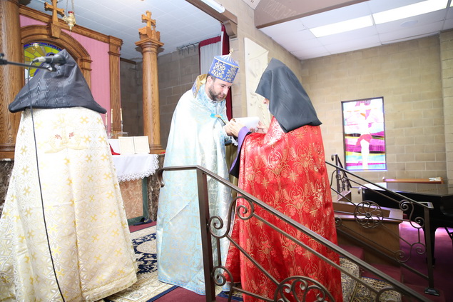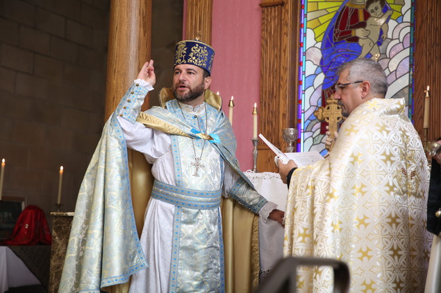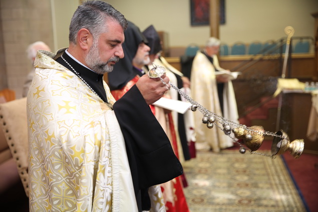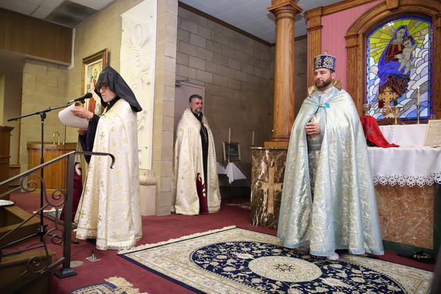 In recognition of the Rev. Fr. Yeremia Khachatryan’s 20th anniversary of ordination into the priesthood, the Pontifical Encyclical of His Holiness Karekin II, Supreme Patriarch and Catholicos of All Armenians, was read by the Very Rev. Fr. Dajad Dz. V. Yardemian during the service. In his message of blessing and commendation, the Catholicos of All Armenians also bestowed upon the priest the privilege to be vested with a floral cloak.