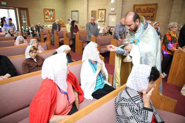 Prior to the conclusion of the service, the clergy participated in the traditional rite of the Blessing of Basil leaves.