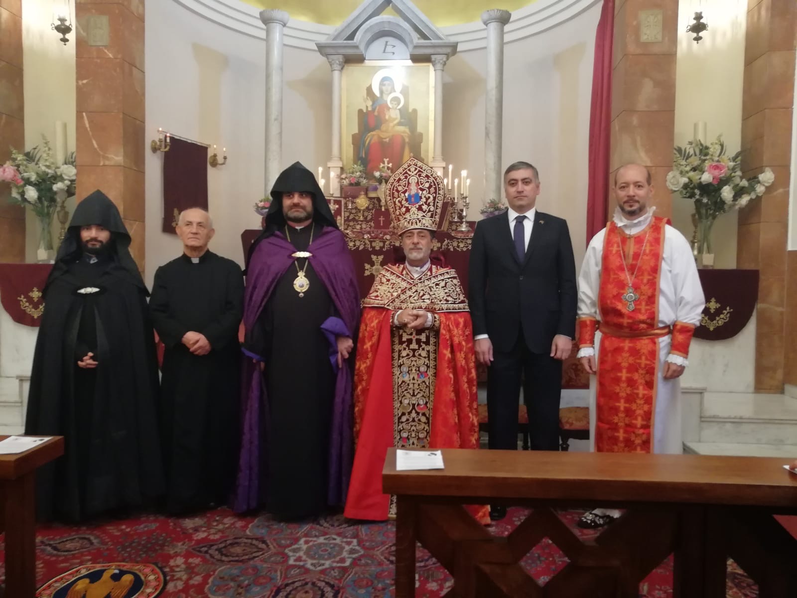 At the invitation of His Grace Bishop Tiran Petrosyan, Pontifical Legate of Central Europe and Sweden, on October 27, 2019, His Eminence Archbishop Hovnan Derderian, Primate of the Western Diocese of the Armenian Church of North America celebrated the Divine Liturgy at delivered the sermon at St. Hripsime Armenian Church in Vienna Austria. His Excellency Armen Papikyan, Ambassador of the Republic of Armenia to Austria attended the service.