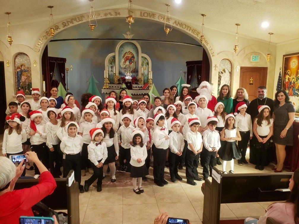 Last Sunday, the Saturday School students of St. Sarkis Armenian Church of Santa Clarita enthralled their audience by performing joyful Christmas songs and presenting through recitation (Gospel according to St. Luke) the birth of our Lord and Savior Jesus Christ. The Christmas spirit was alive in the sanctuary as the angelic voices of the children rejoiced in the birth of the Messiah.