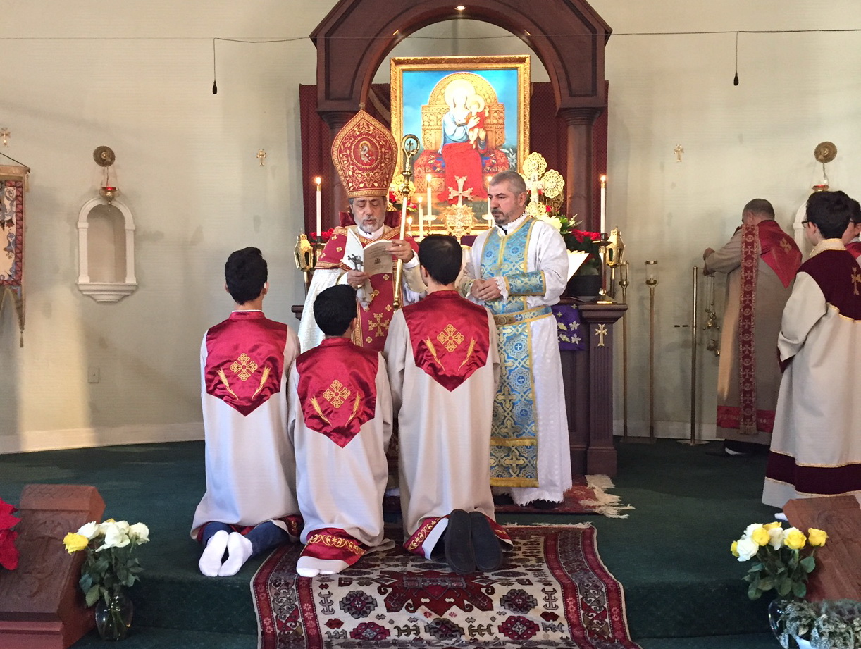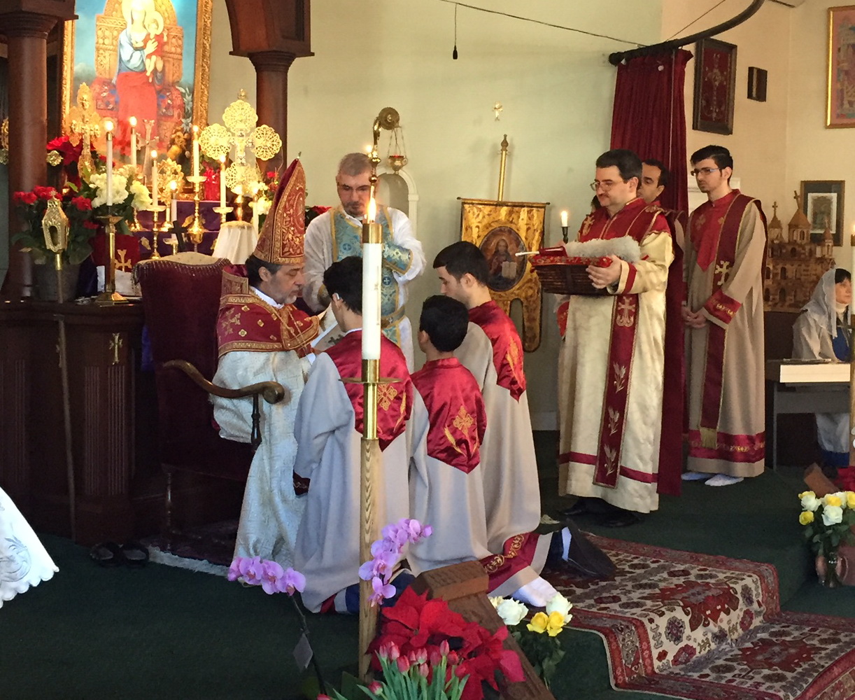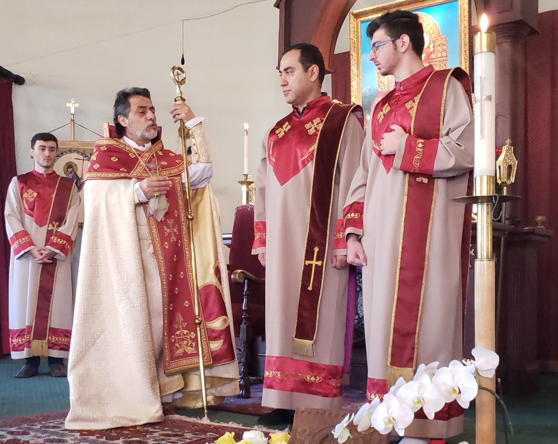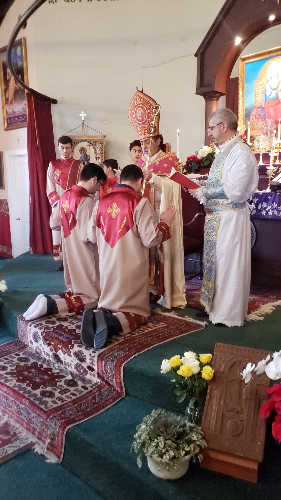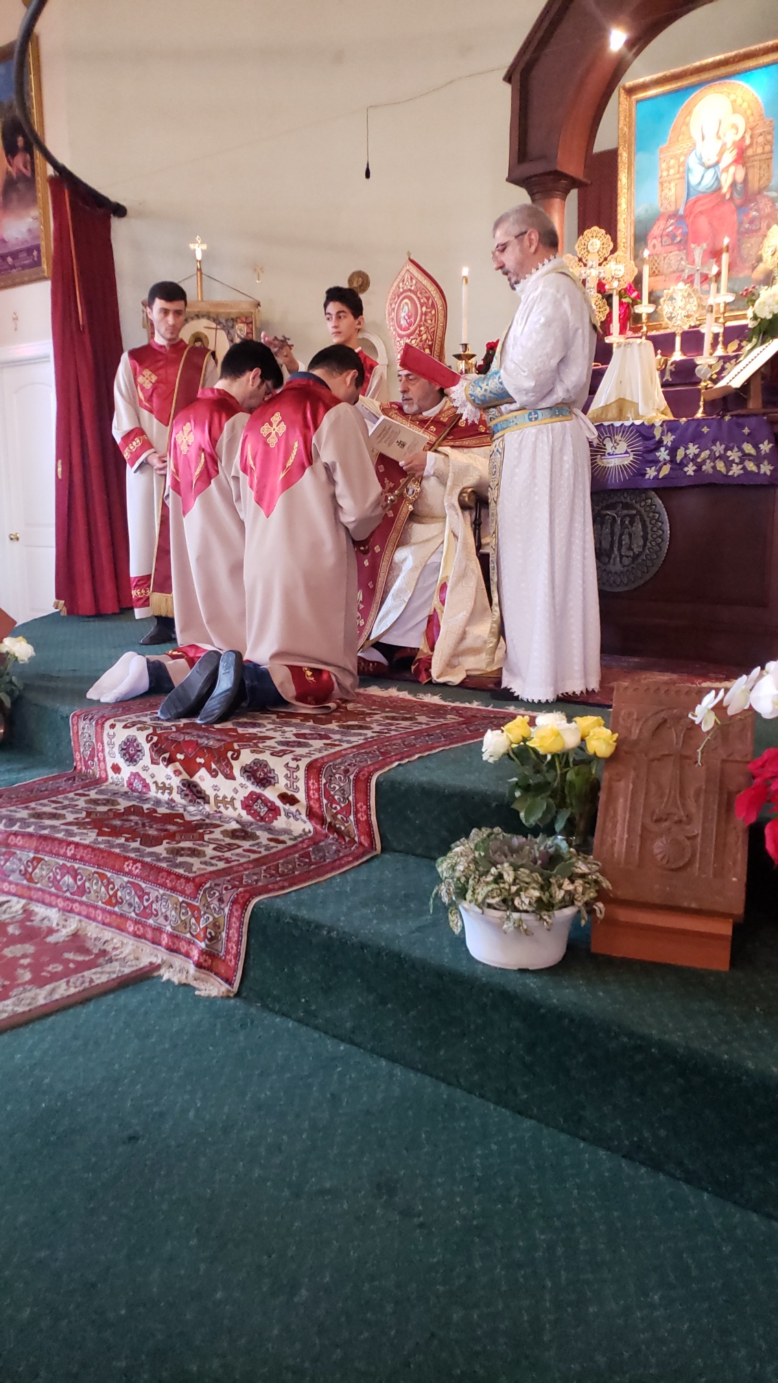 During the service, assisted by the Rev. Fr. Yeghia Isayan, Pastor of St. Peter Armenian Church, Archbishop Derderian conferred four minor orders of acolyte upon Arshag Manukyan, and Hovhannes Manukyan. Altar server Sevak Mnatsakanyan was granted the order of sub-deacon by the Primate.