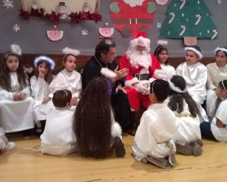 Following the service, the parishioners gathered in the Mehrabian Hall of the parish for a delightful Christmas play presented by the Sunday School children. After a visit from Santa Claus, the children gathered around the Primate and learned a liturgical hymn of the Armenian Church (sharagan) dedicated to the Feast of the Nativity and Theophany of Christ, our Lord.