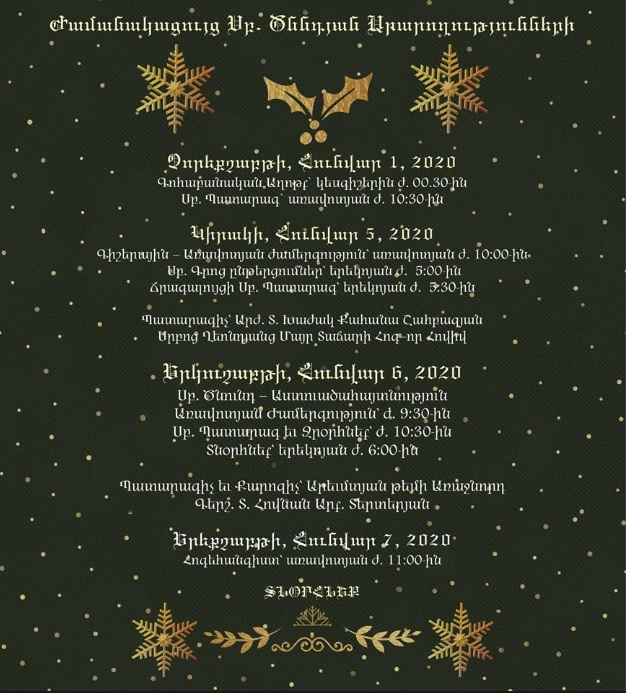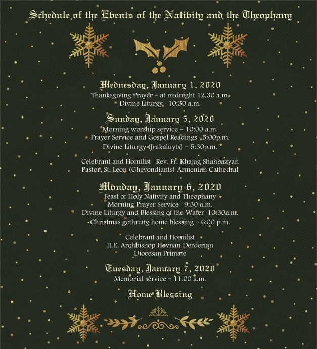 We present the New Year's and Nativity schedule of services at St. Leon Armenian Cathedral.Â