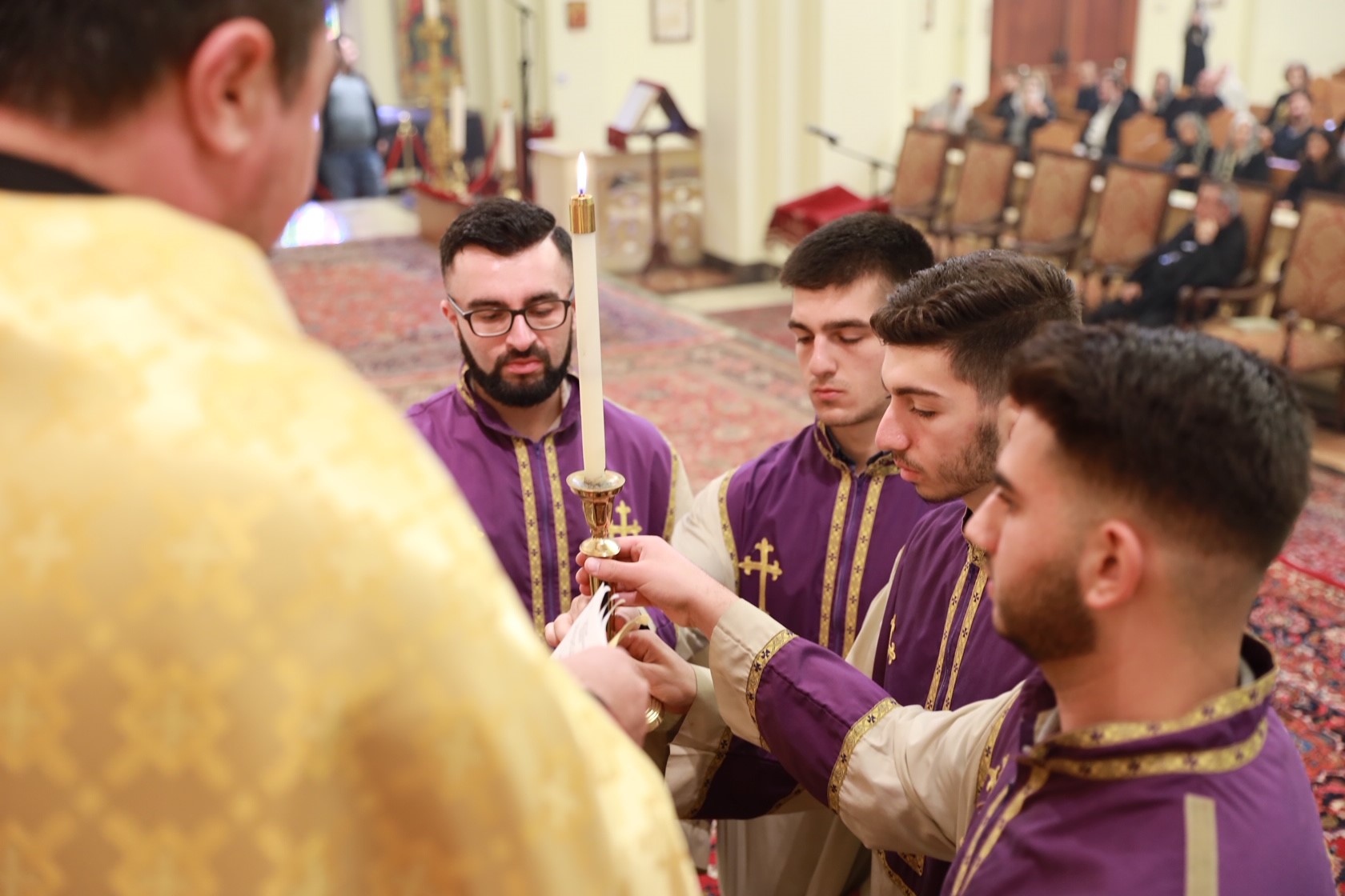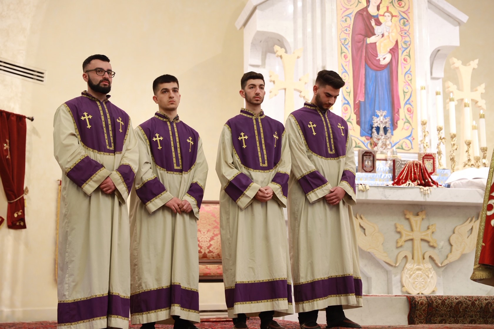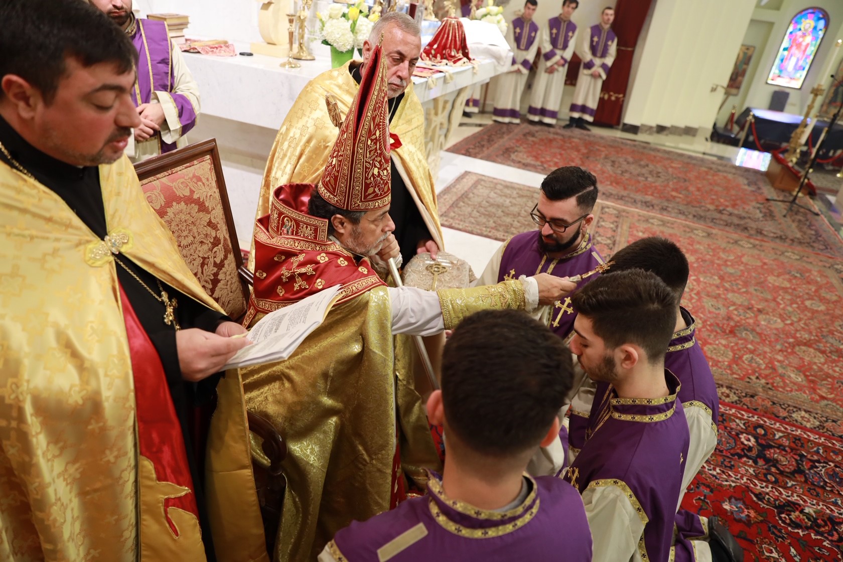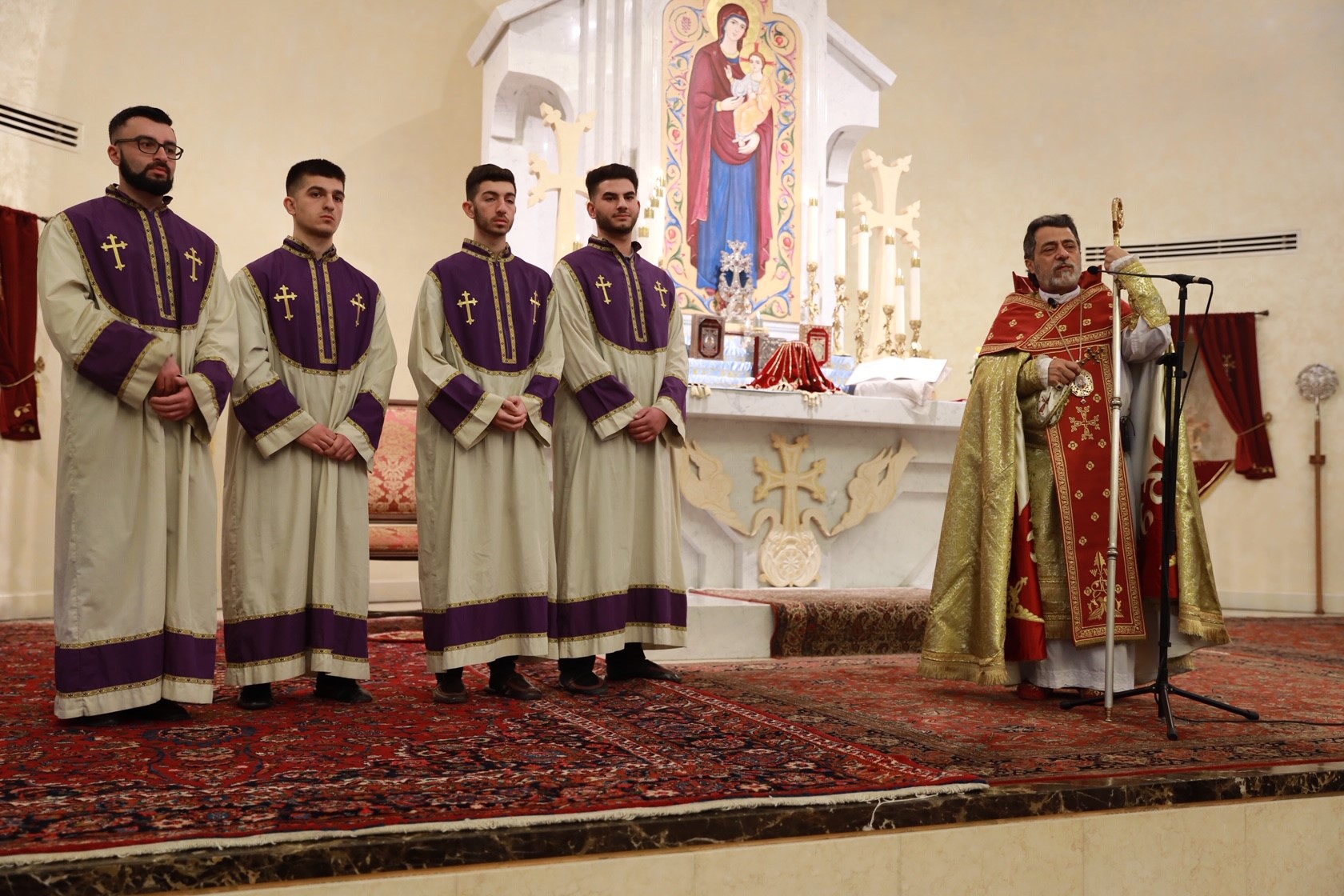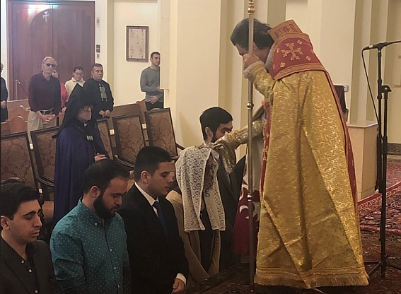 During the service, assisted by Archpriest Fr. Manoug Markarian and the Rev. Fr. Khajag Shahbazyan, the Primate granted four minor orders of acolyte to Aret Allen Guzelses, Haig Divanian, Andrew Gharibian and Nareg Ghookasian. Archbishop Derderian encouraged the young altar servers to renew their calling to service, to uphold the sacred traditions of the Armenian Church and family and to become exemplary Christians in society.