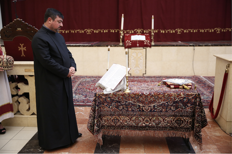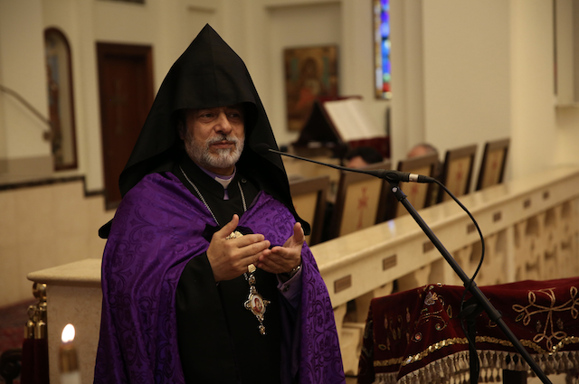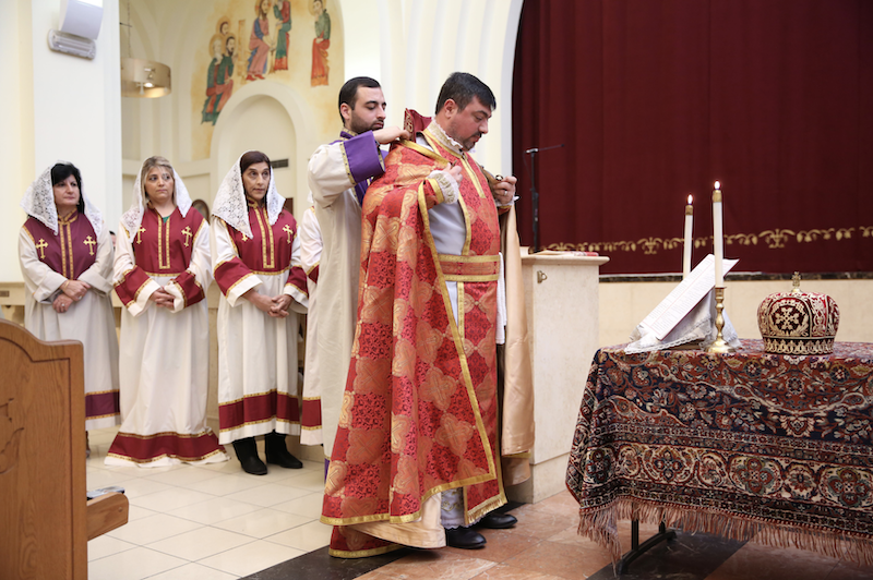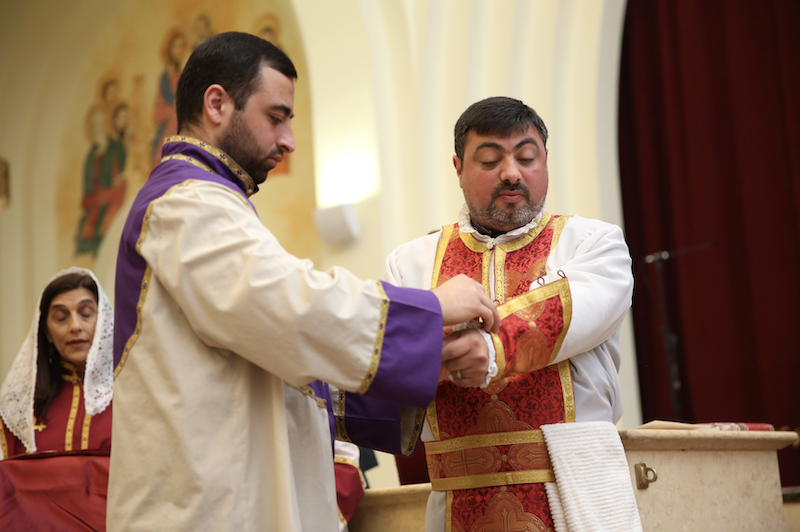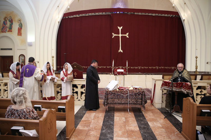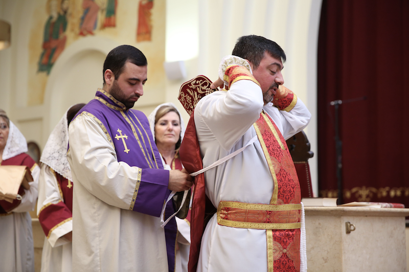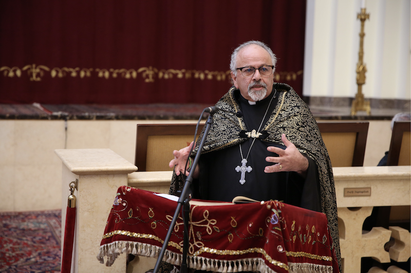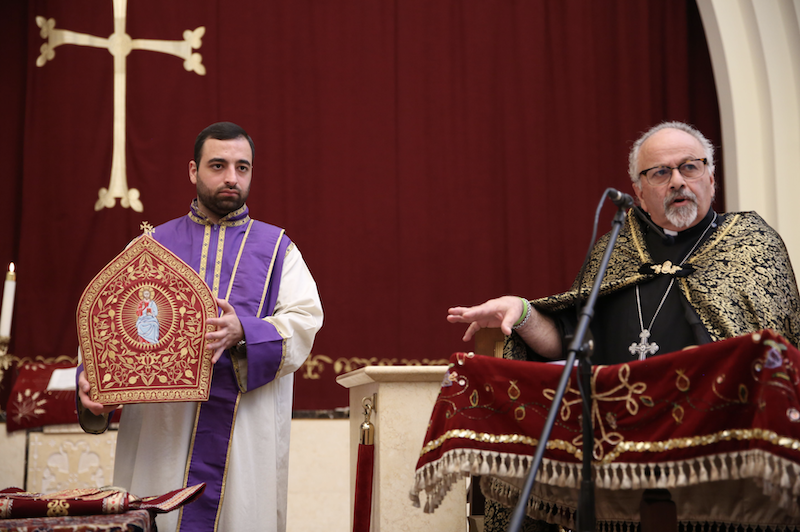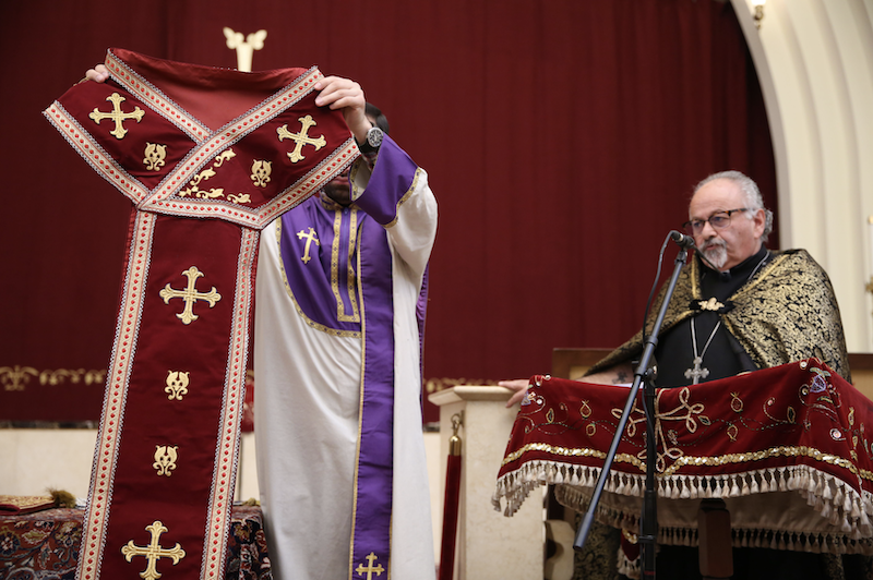 From the Shabig (Alb), which demonstrates the gladness of the spirit with which the priest approaches the Lord’s Table, to the Saghavard (Sacredotal Crown), which symbolizes the royal attribute of Christ the King whom the priest represents and His strength against fighting evil, the two priests were able to eloquently and with much dignity and solemnity, shed light and understanding towards this ancient and continuous Armenian Apostolic Church spiritual traditions.