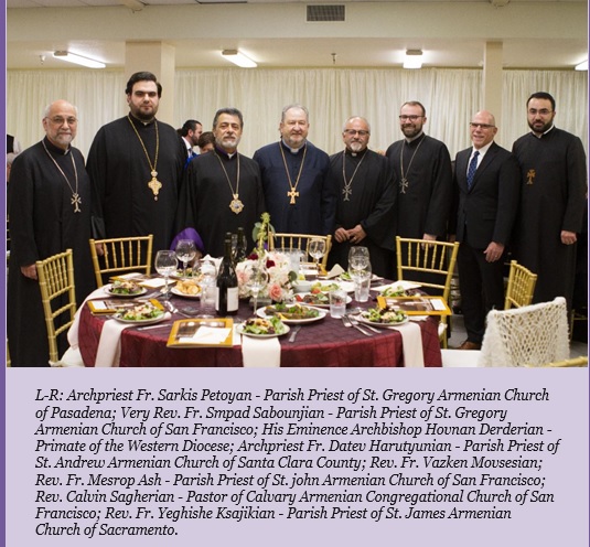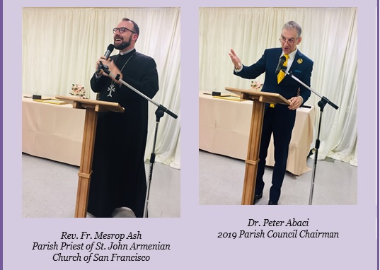 A proclamation of Father Datev’s 30th anniversary of ordination was presented by Santa Clara County Supervisor the Honorable Joe Simitian. Remarks at the banquet were also made by Homenetmen’s Ani Chapter Chairman Vahe Baronian, Homenetmen’s Ani Chapter Executive Council Member Krikor Krikorian, AGBU Central Council Member Dr. Yervant Zorian, ARF Bay Area Chair Maral Boursalian, Armenian Relief Society’s Agnouni Chapter’s Kohar Enemark, San Francisco and Bay Area ANCA Chairman Matt Senikeremian, San Francisco’s St. John Armenian Church Pastor the Rev. Fr. Mesrop Ash, Fr. Datev’s son Deacon Dikran Harutyunian, and St. Andrew Armenian Church Parish Council Chair Dr. Peter Abaci.